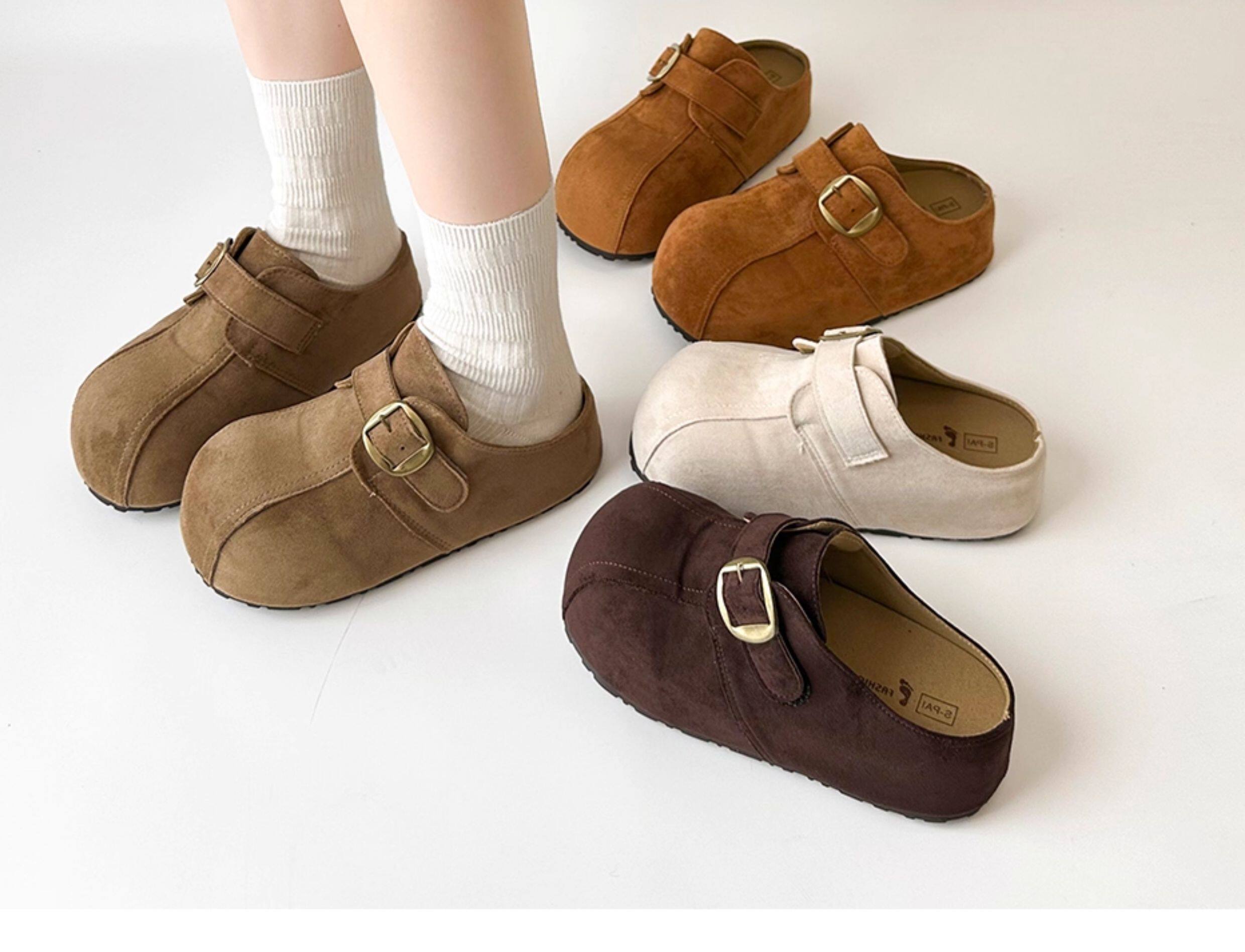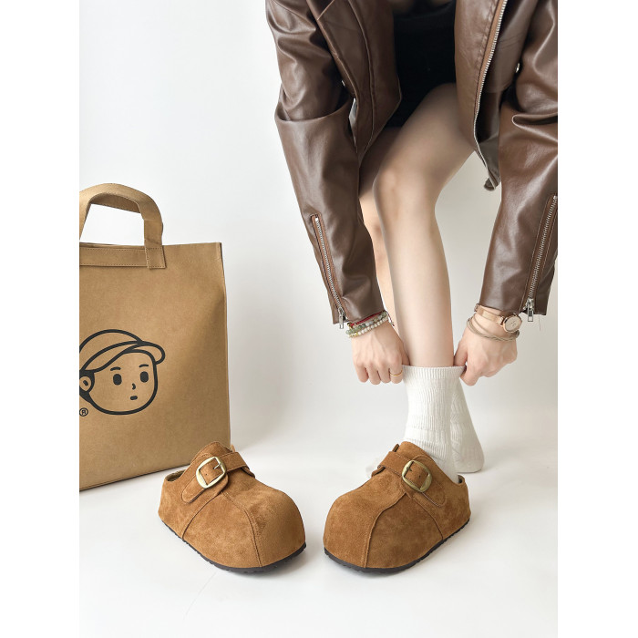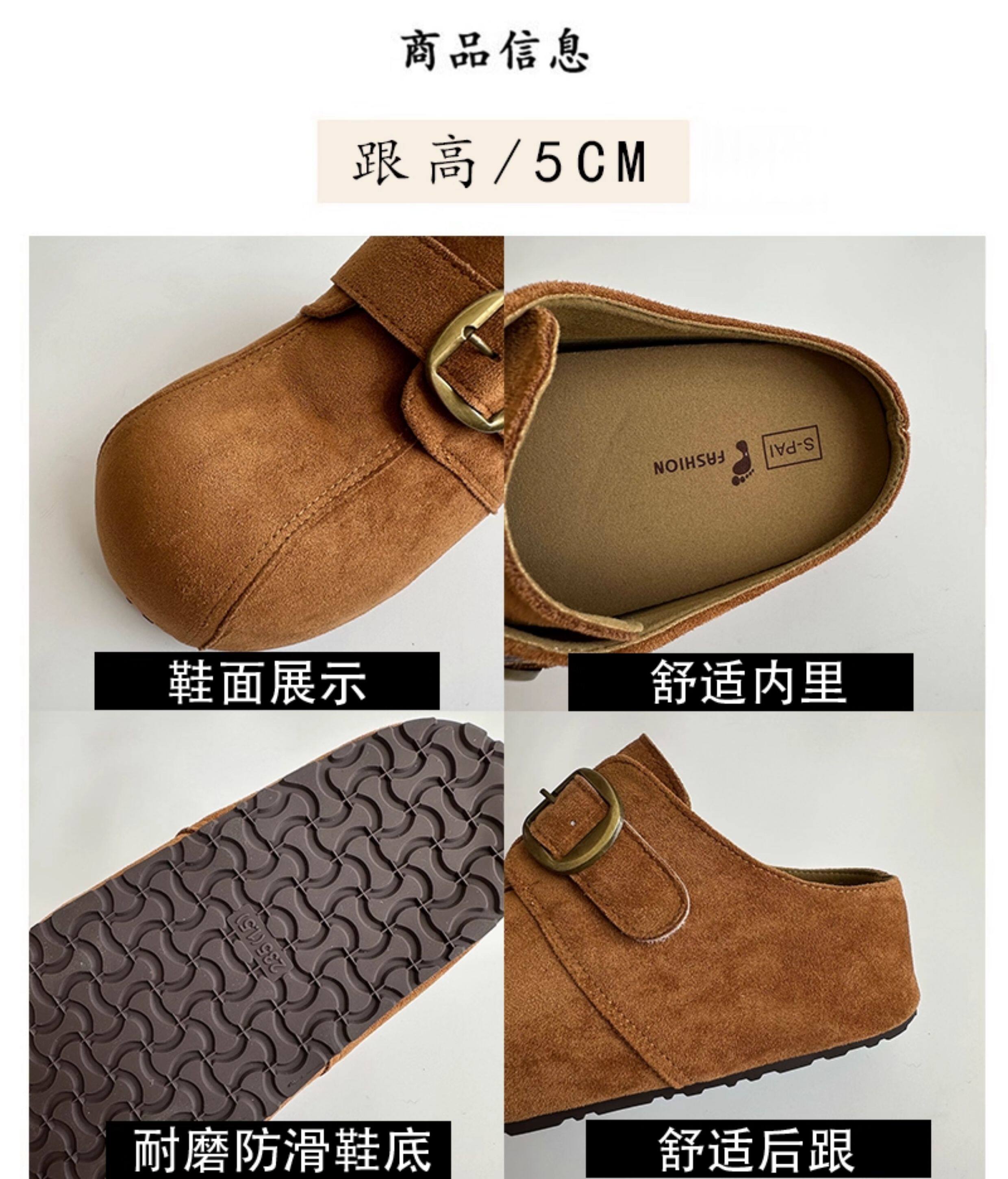 厚底防滑增高勃肯鞋女外穿2025新款秋季復古休閒一腳蹬包頭半拖鞋