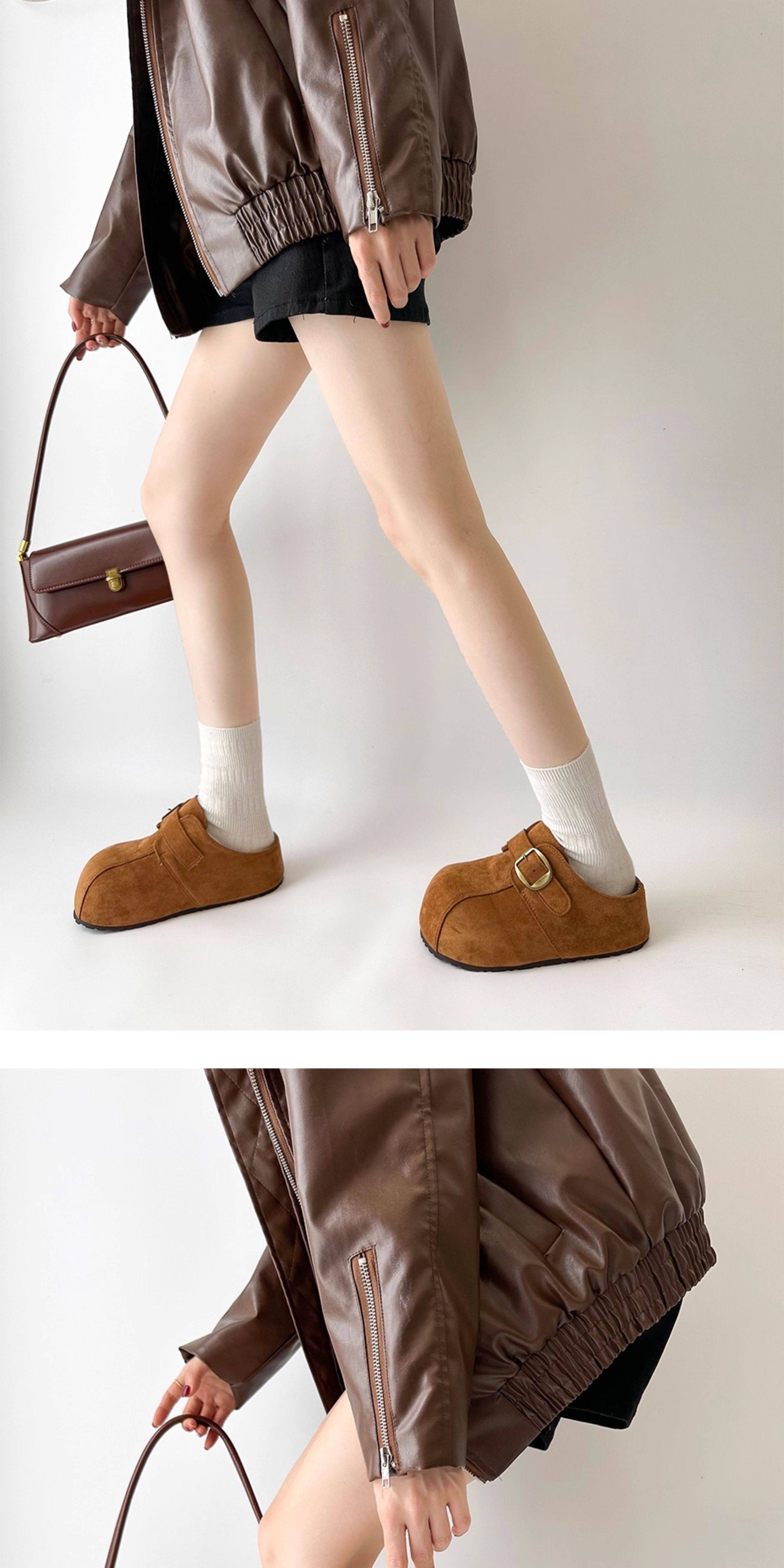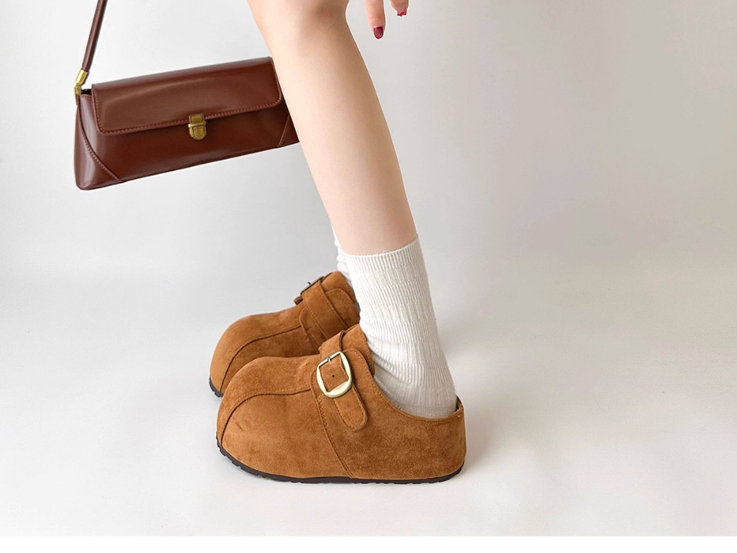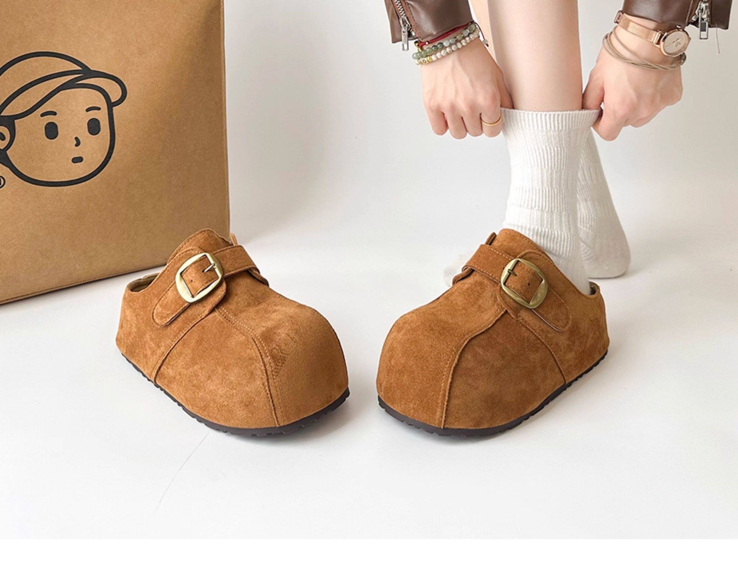 厚底防滑增高勃肯鞋女外穿2025新款秋季復古休閒一腳蹬包頭半拖鞋