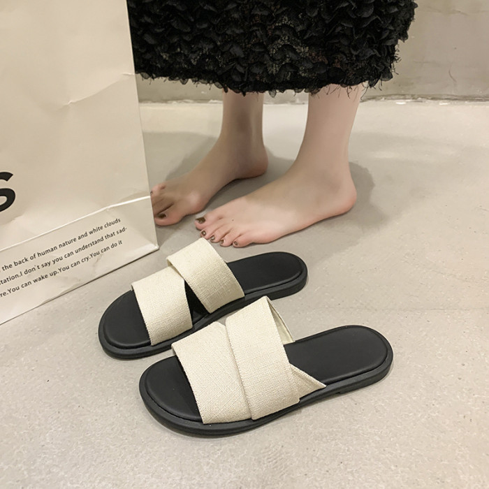涼拖鞋女夏外穿2024年新款平底沙灘一字拖軟底休閒拖鞋