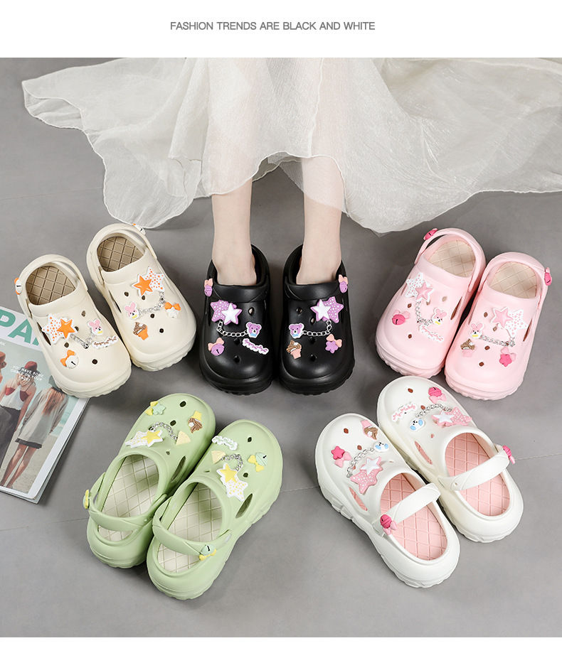 網紅時尚松糕底洞洞鞋女厚底增高防滑可愛卡通沙灘涼拖外穿秋夏季