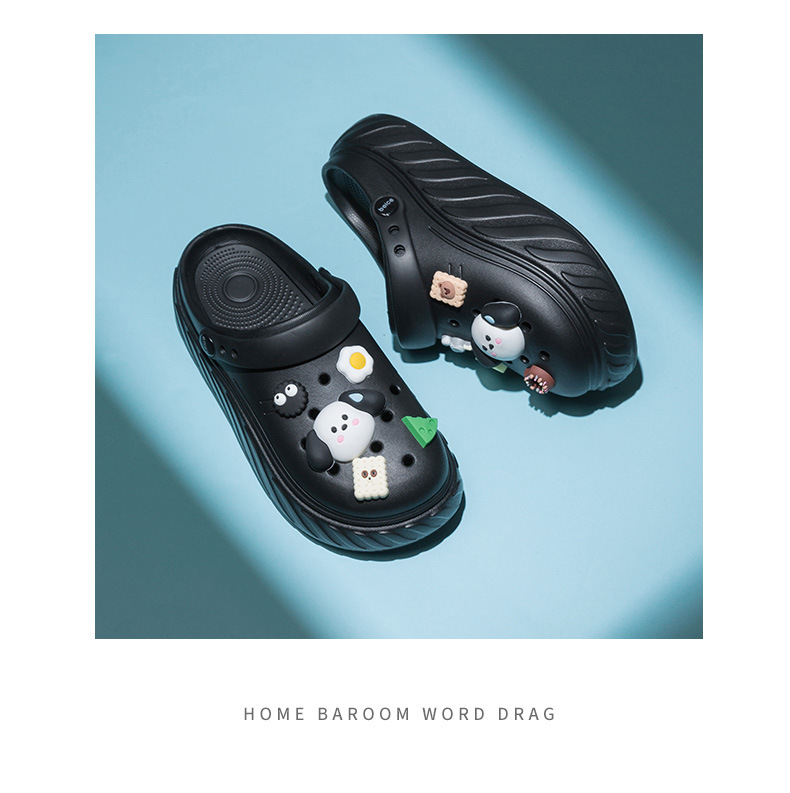 可愛ins外穿超厚底洞洞鞋女居家卡通學生涼鞋潮松糕底包頭拖鞋夏