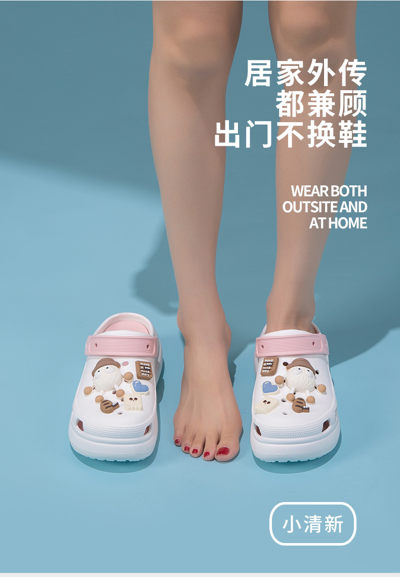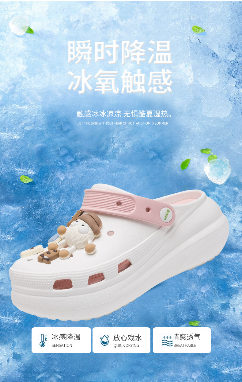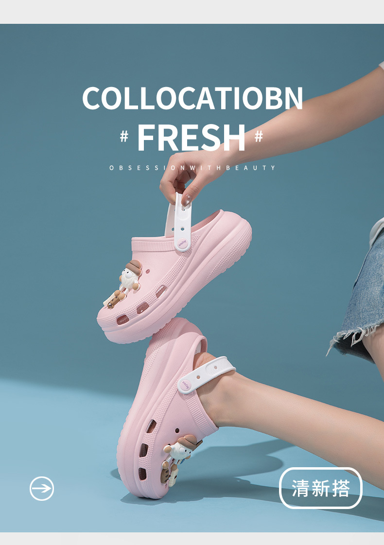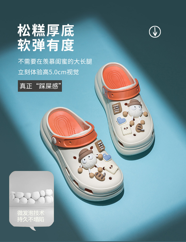 明星同款泡芙洞洞鞋女卡通可愛厚底踩屎感沙灘鞋夏2024新款涼拖鞋