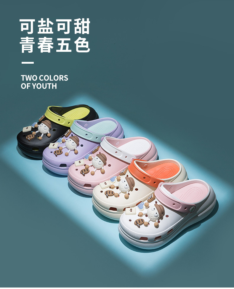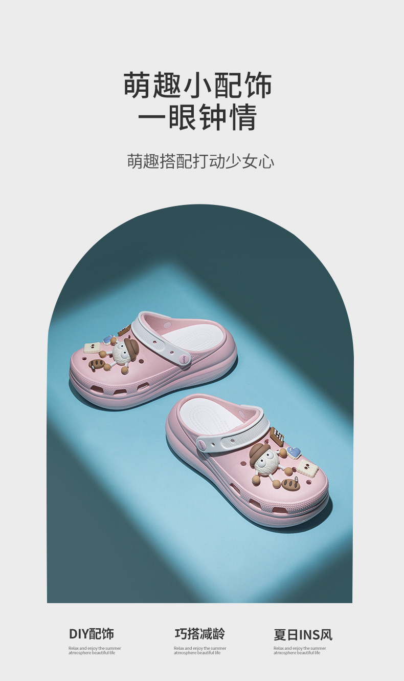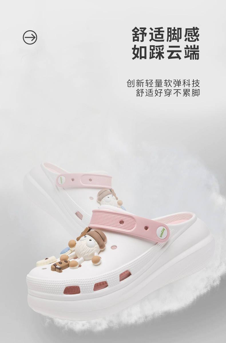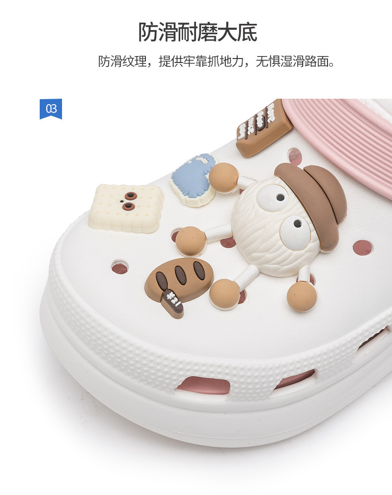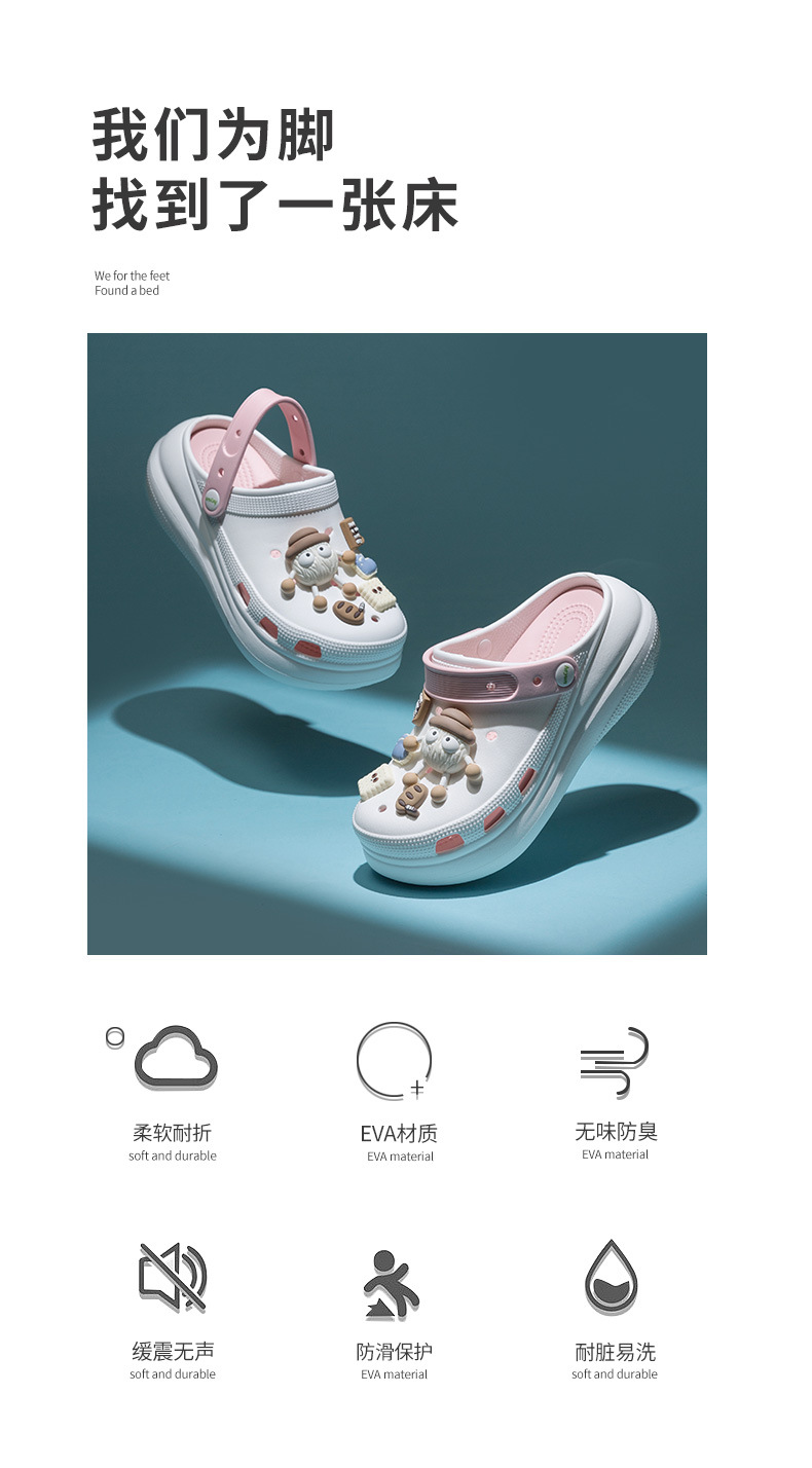 明星同款泡芙洞洞鞋女卡通可愛厚底踩屎感沙灘鞋夏2024新款涼拖鞋