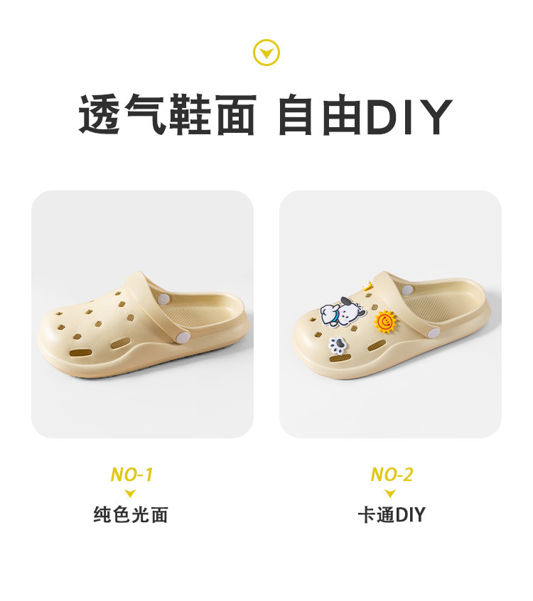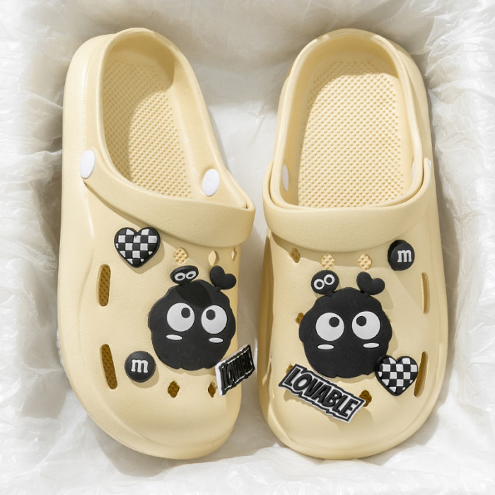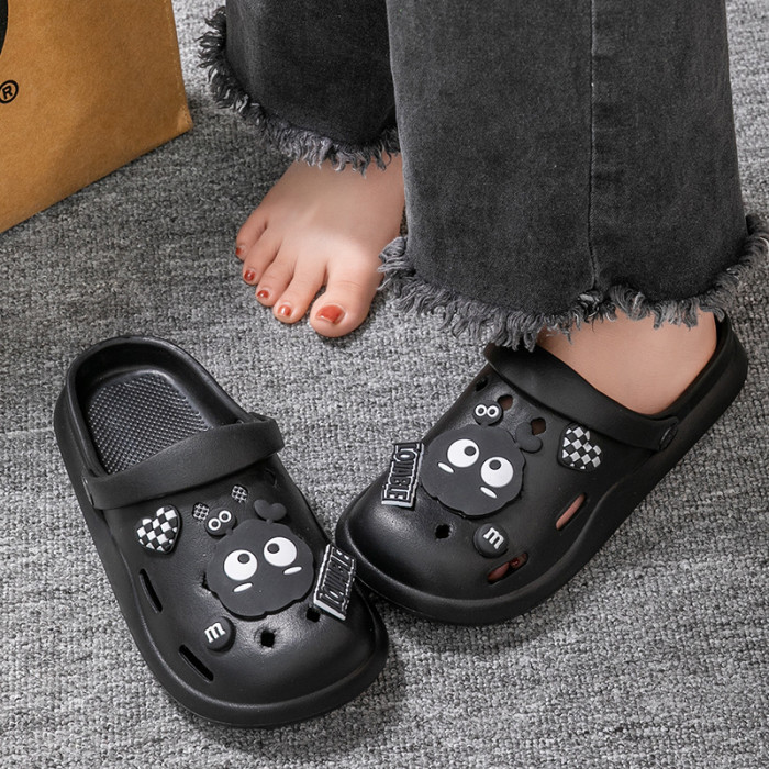 煤球洞洞鞋女款夏季2024新款卡通外穿厚底踩屎感防滑包頭半拖鞋