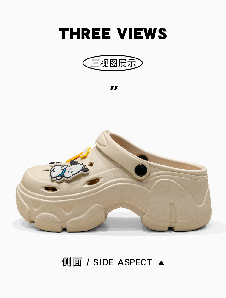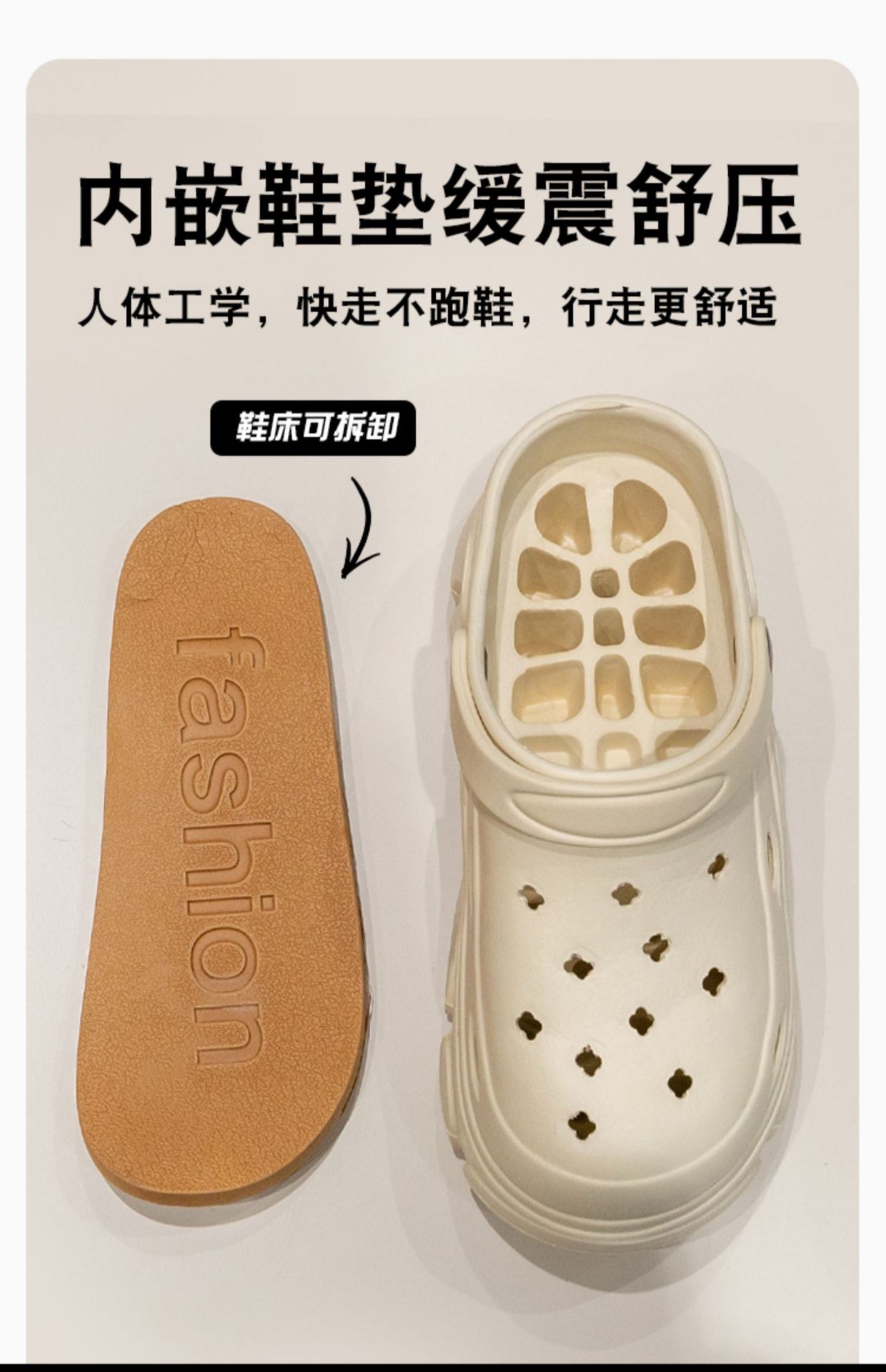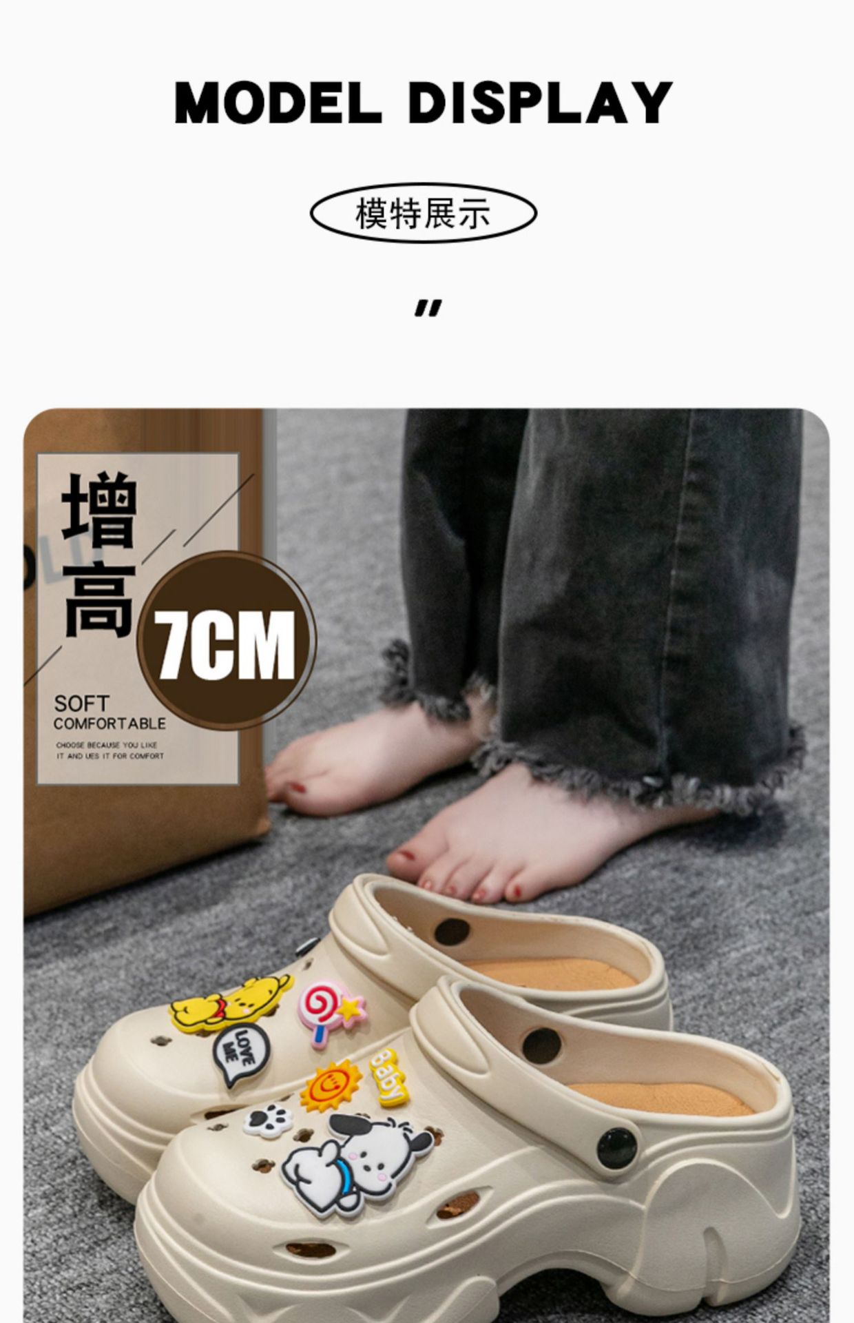 煤球洞洞鞋女款夏季2024新款可愛松糕厚底踩屎感增高防滑包頭拖鞋