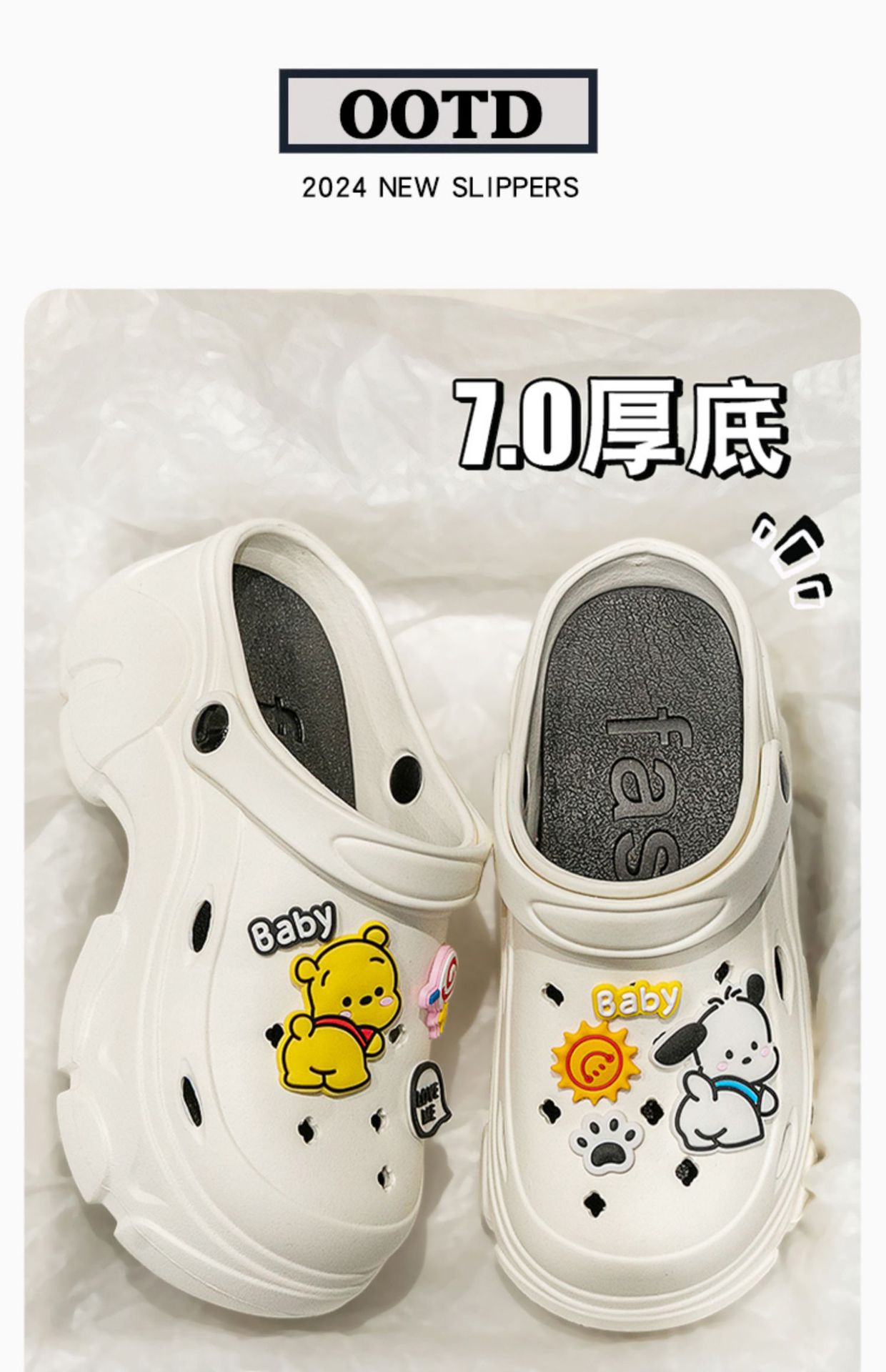 高厚底洞洞鞋女夏季新款時尚外穿踩屎感沙灘鞋防滑包頭半拖鞋女