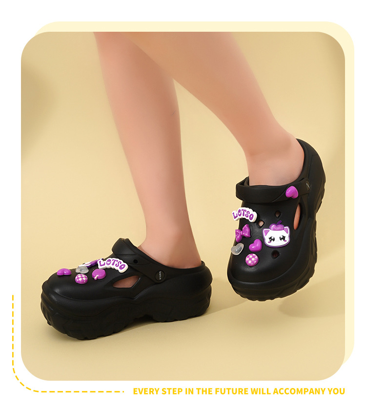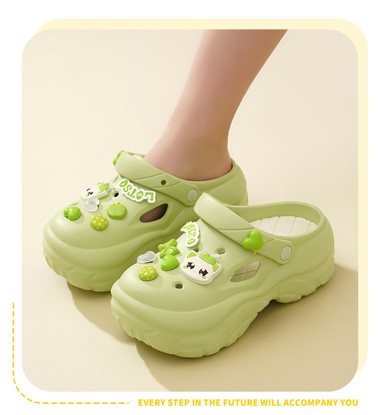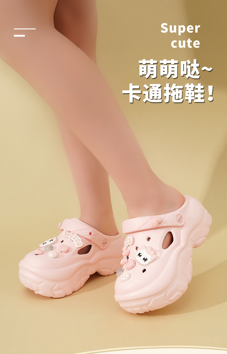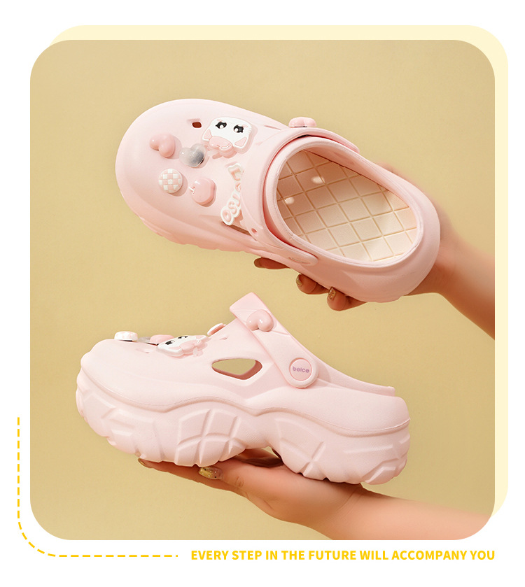 新時尚松糕底洞洞鞋女款厚底增高防滑網紅可愛沙灘涼拖鞋外穿夏季