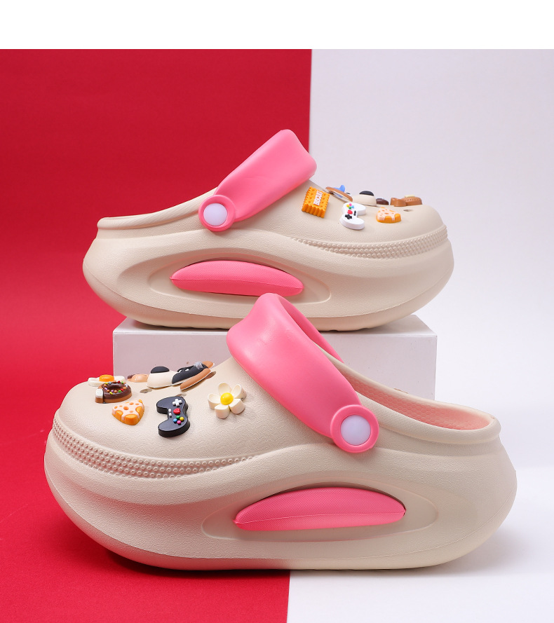 可拆卸厚底洞洞鞋女夏新款居家防滑增高沙灘踩屎感卡通涼拖鞋外穿