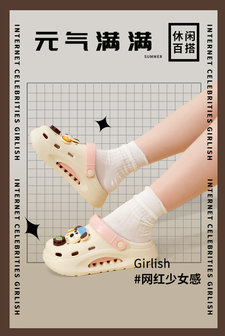 EVA洞洞鞋女款夏季外穿踩屎感增高厚底5CM防滑時尚網紅可愛沙灘鞋