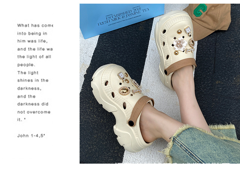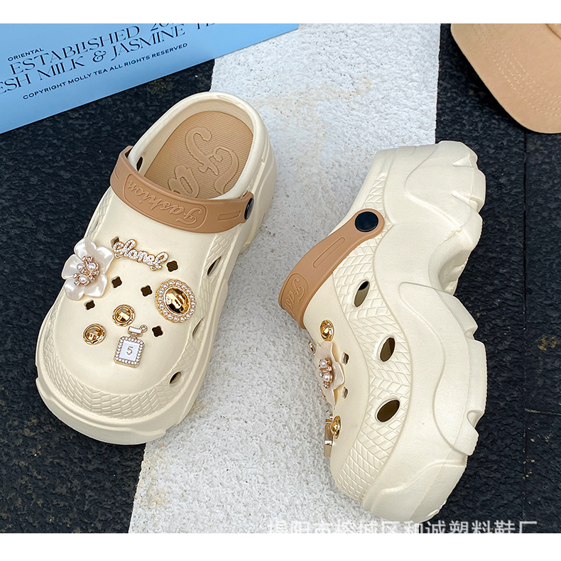 泡芙洞洞鞋女厚底增高沙灘鞋防滑軟底拖鞋雲朵EVA洞洞外穿涼鞋女