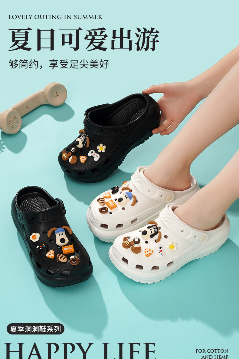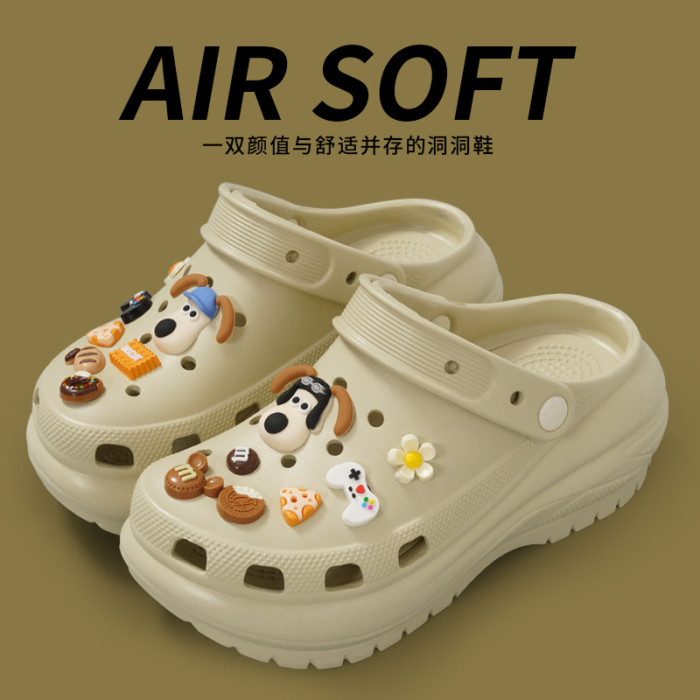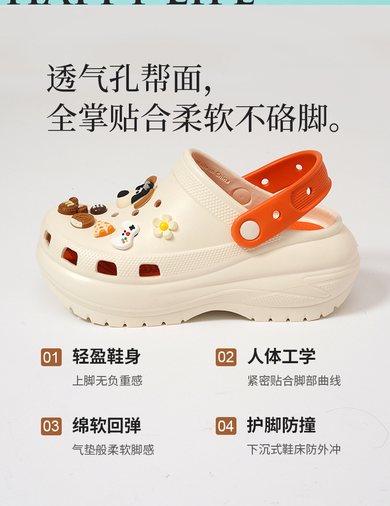新版光輪洞洞鞋女夏季外穿踩屎感增高厚底拖鞋軟底防滑涼鞋沙灘鞋