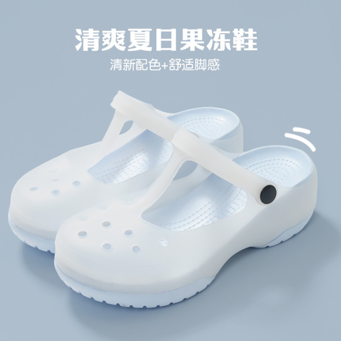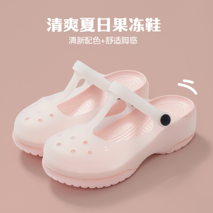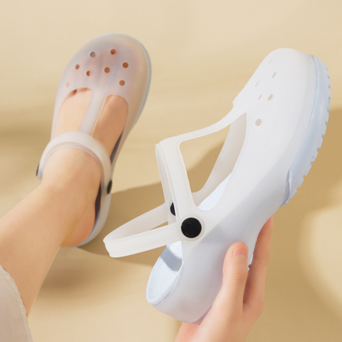 新款護士洞洞鞋女孕婦包頭涼鞋夏防滑厚底果凍沙灘鞋外穿軟底拖鞋