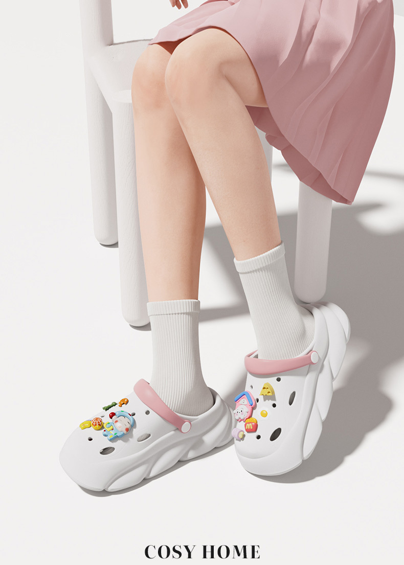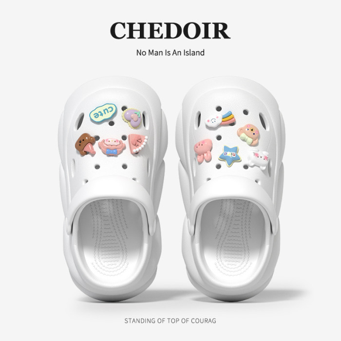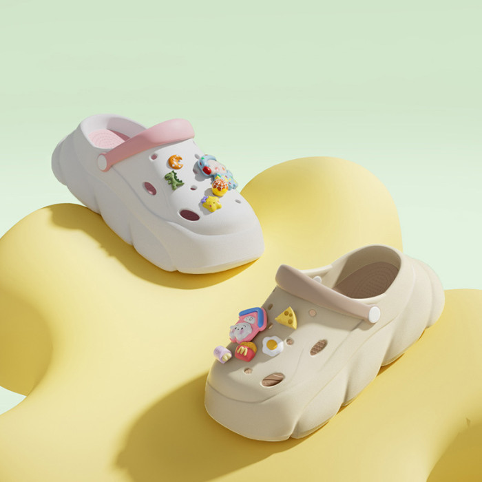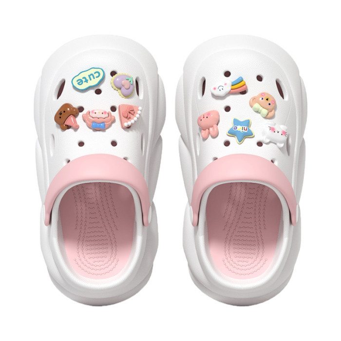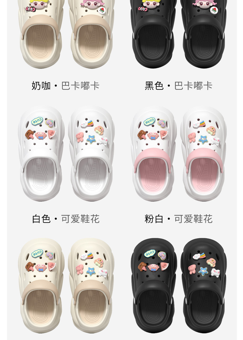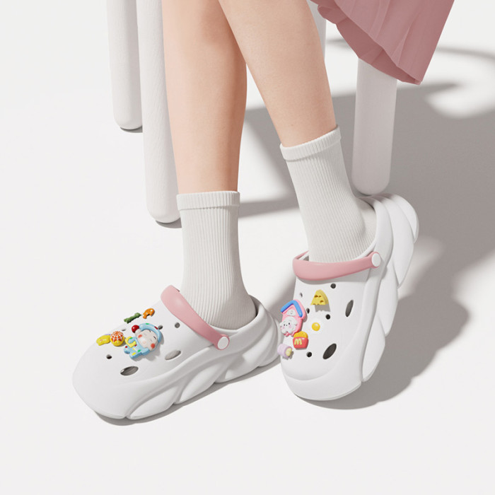 爆款女士夏季厚底增高洞洞鞋鞋墊可拆卸可愛卡通外穿軟底涼鞋