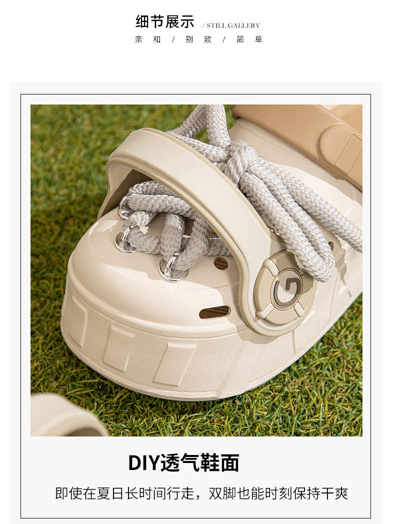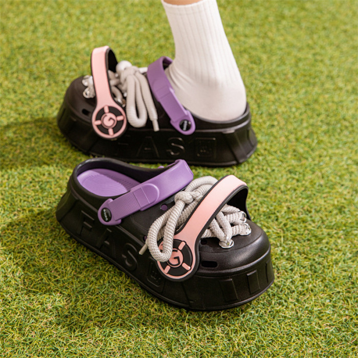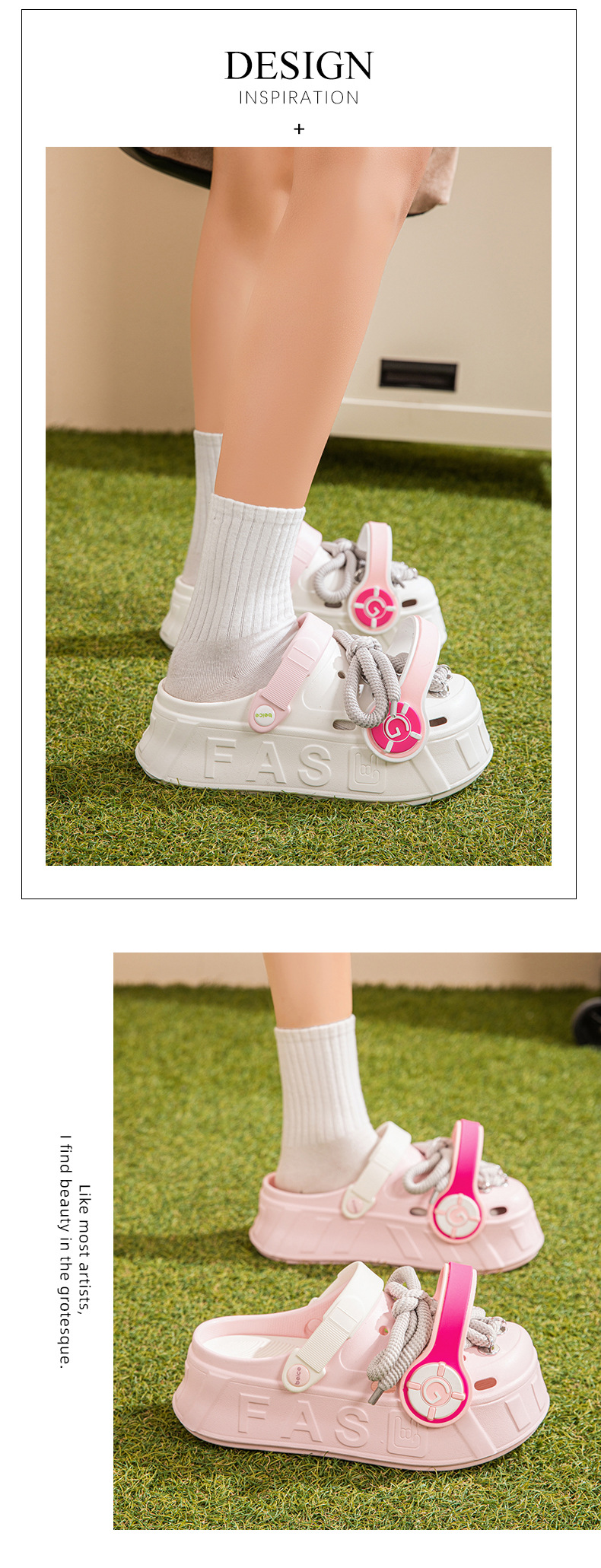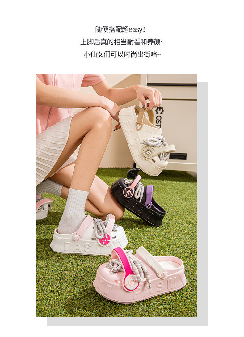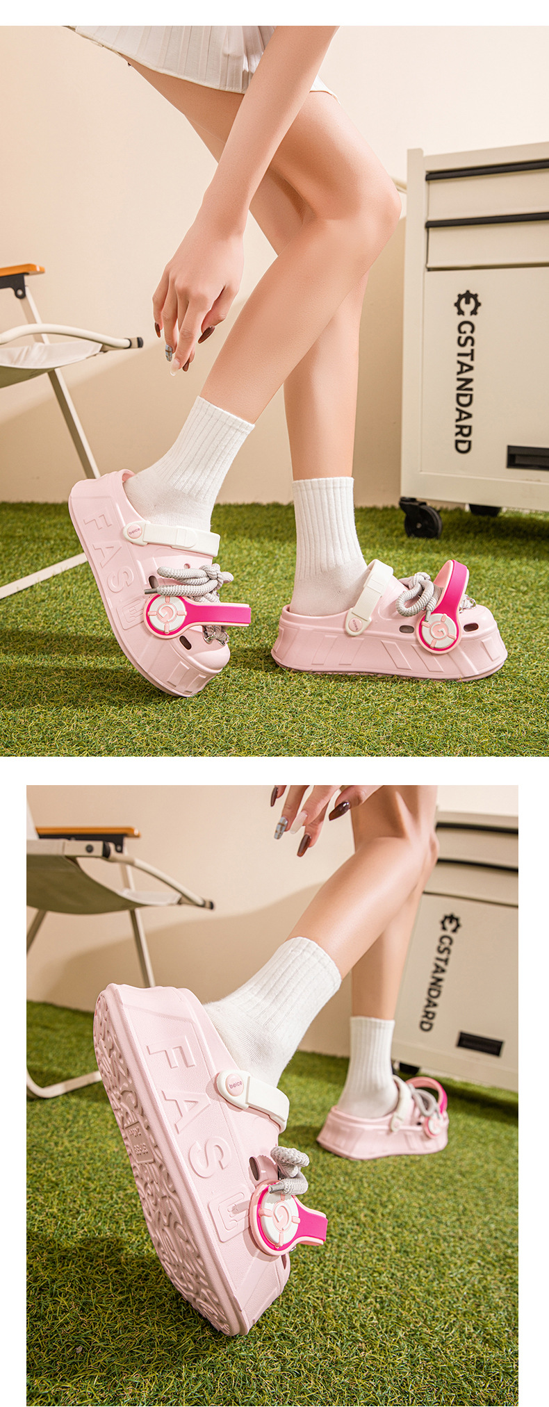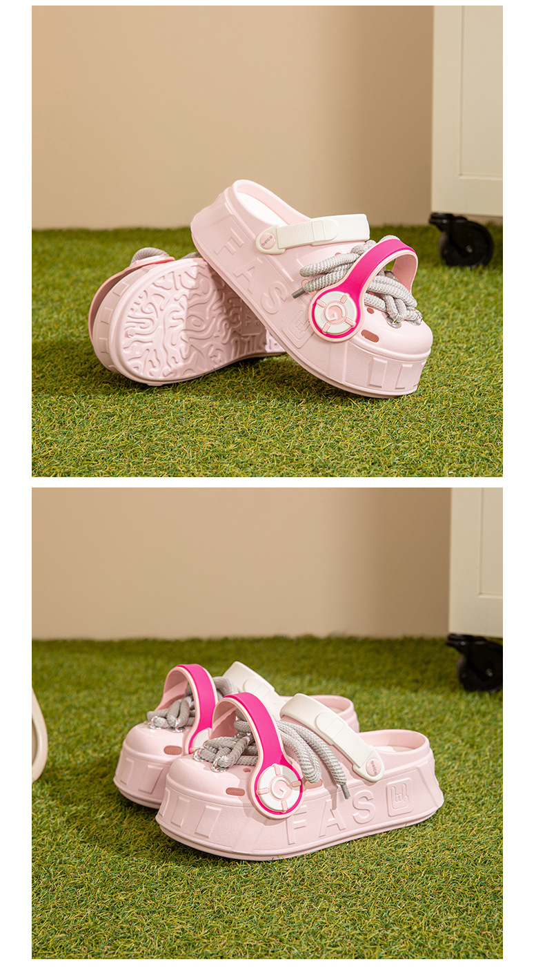 可愛潮流耳機洞洞鞋女士拖鞋夏季包頭鞋個性外穿女生沙灘鞋涼拖鞋