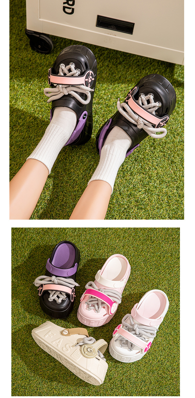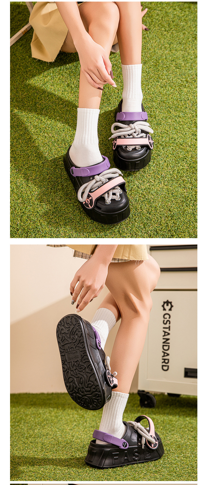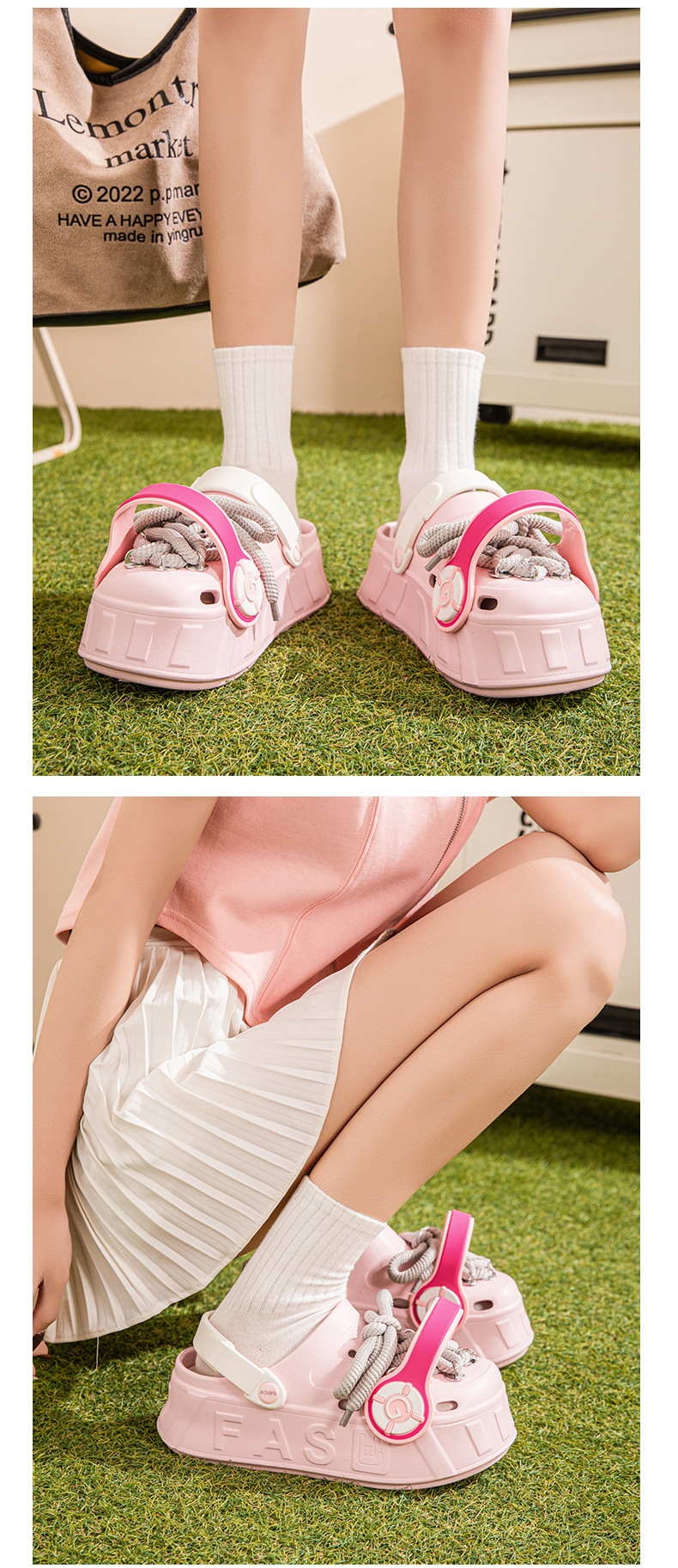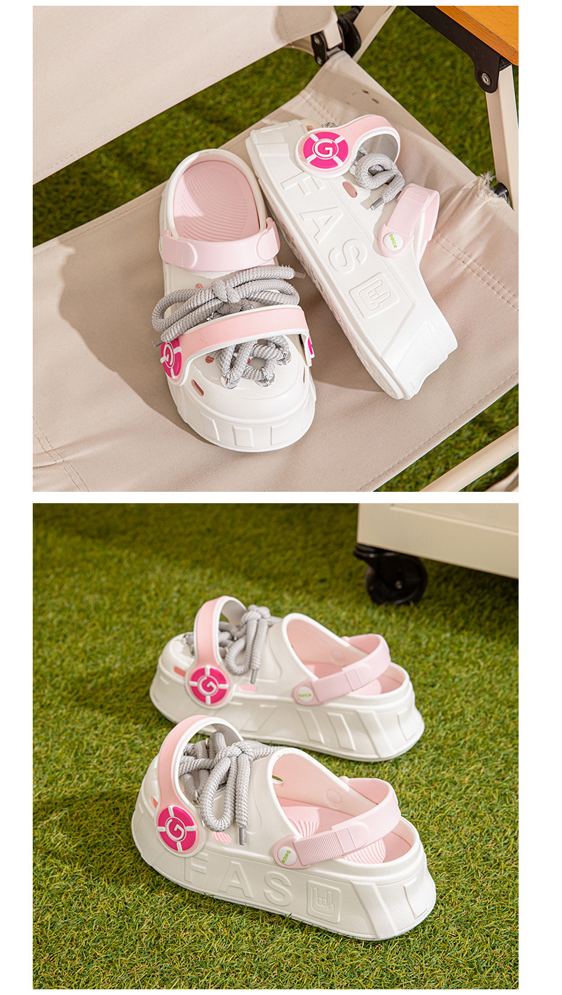 可愛潮流耳機洞洞鞋女士拖鞋夏季包頭鞋個性外穿女生沙灘鞋涼拖鞋