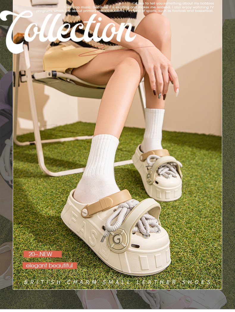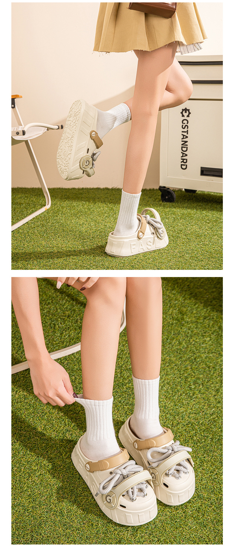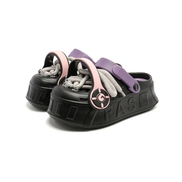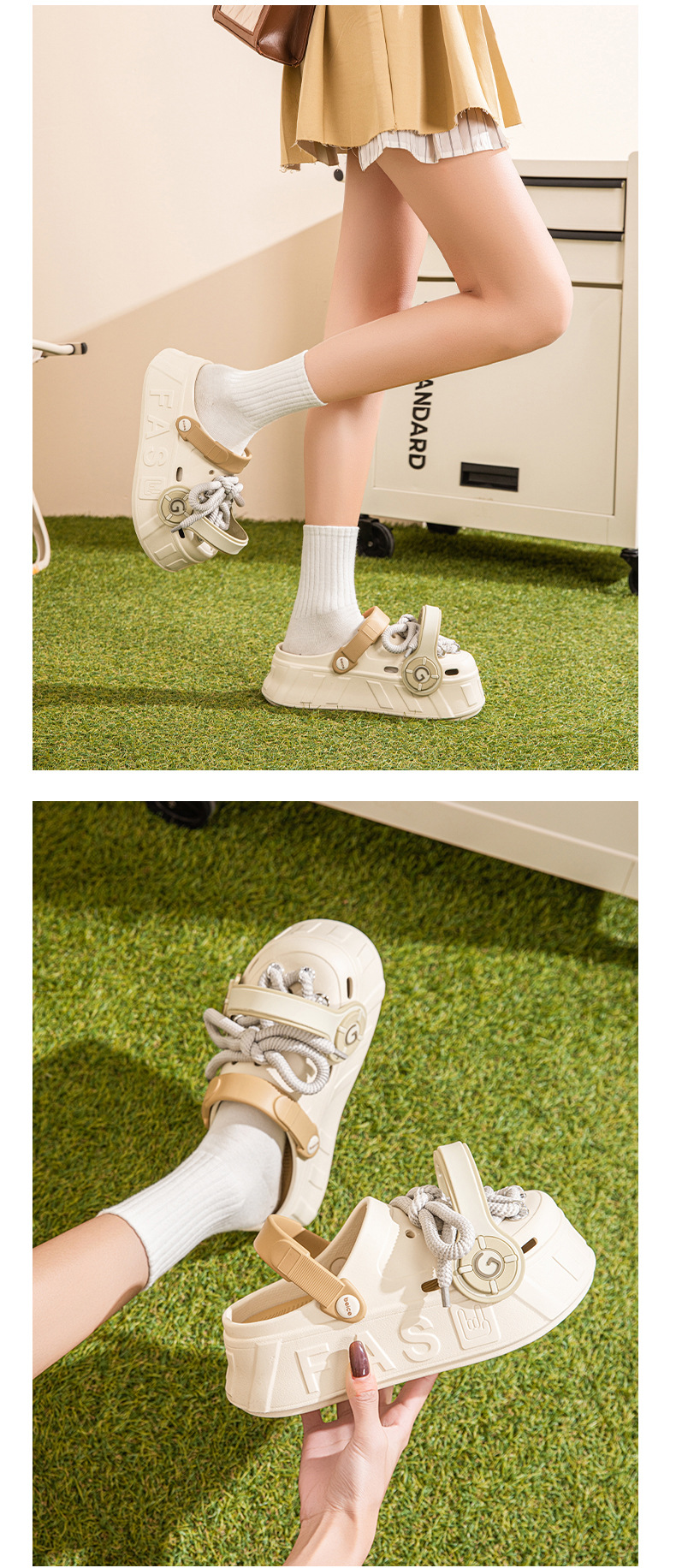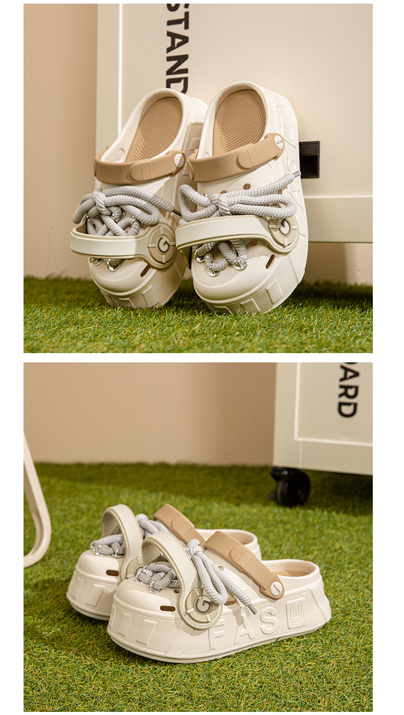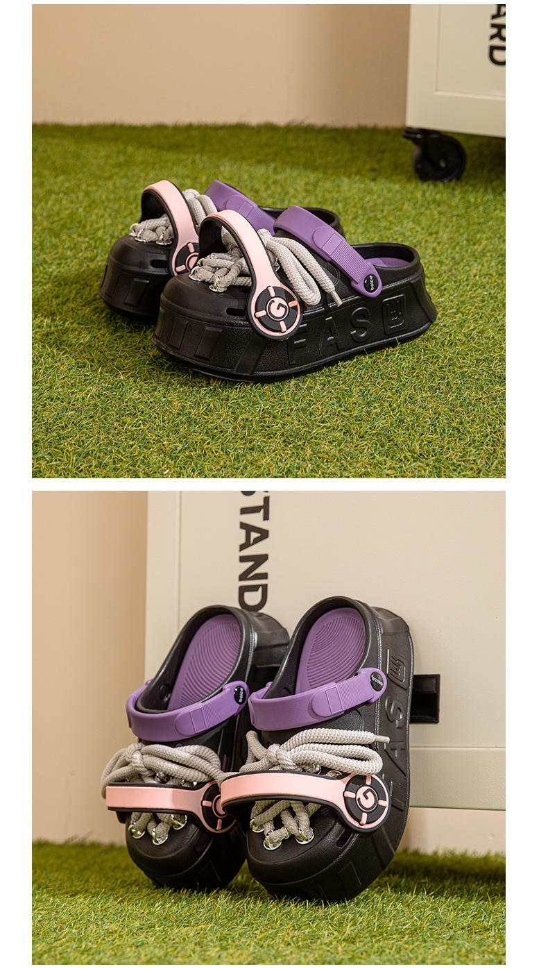 可愛潮流耳機洞洞鞋女士拖鞋夏季包頭鞋個性外穿女生沙灘鞋涼拖鞋