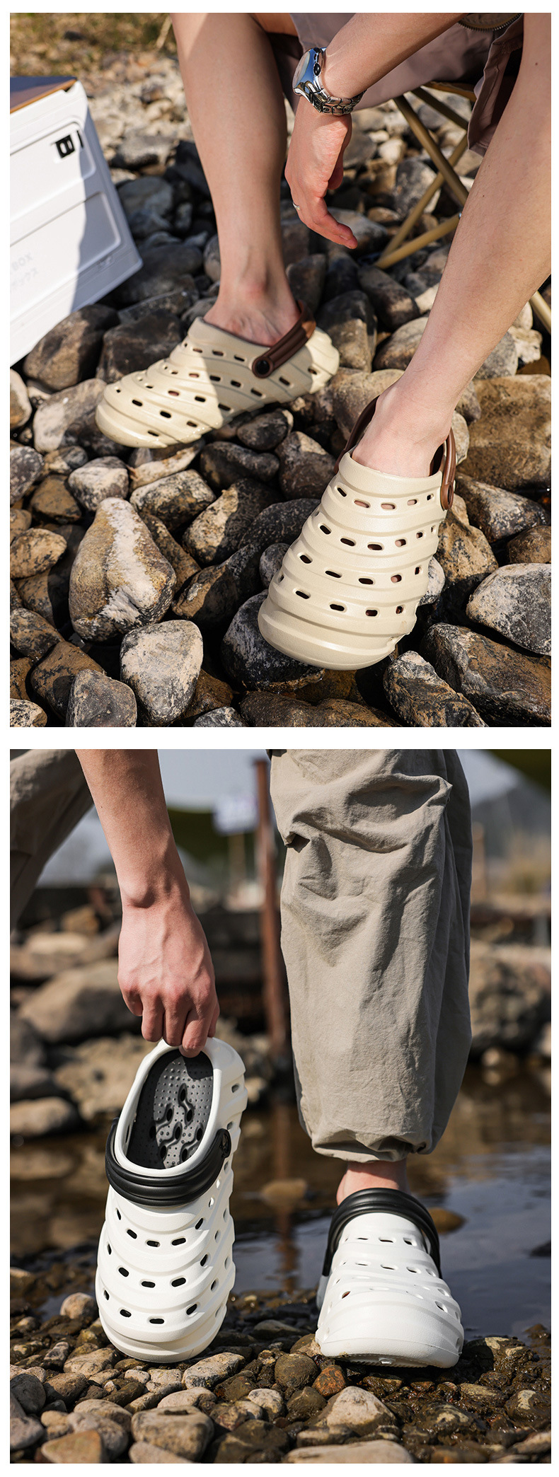 2025新款厚底時尚青年透氣沙灘洞洞鞋男eva休閒鞋