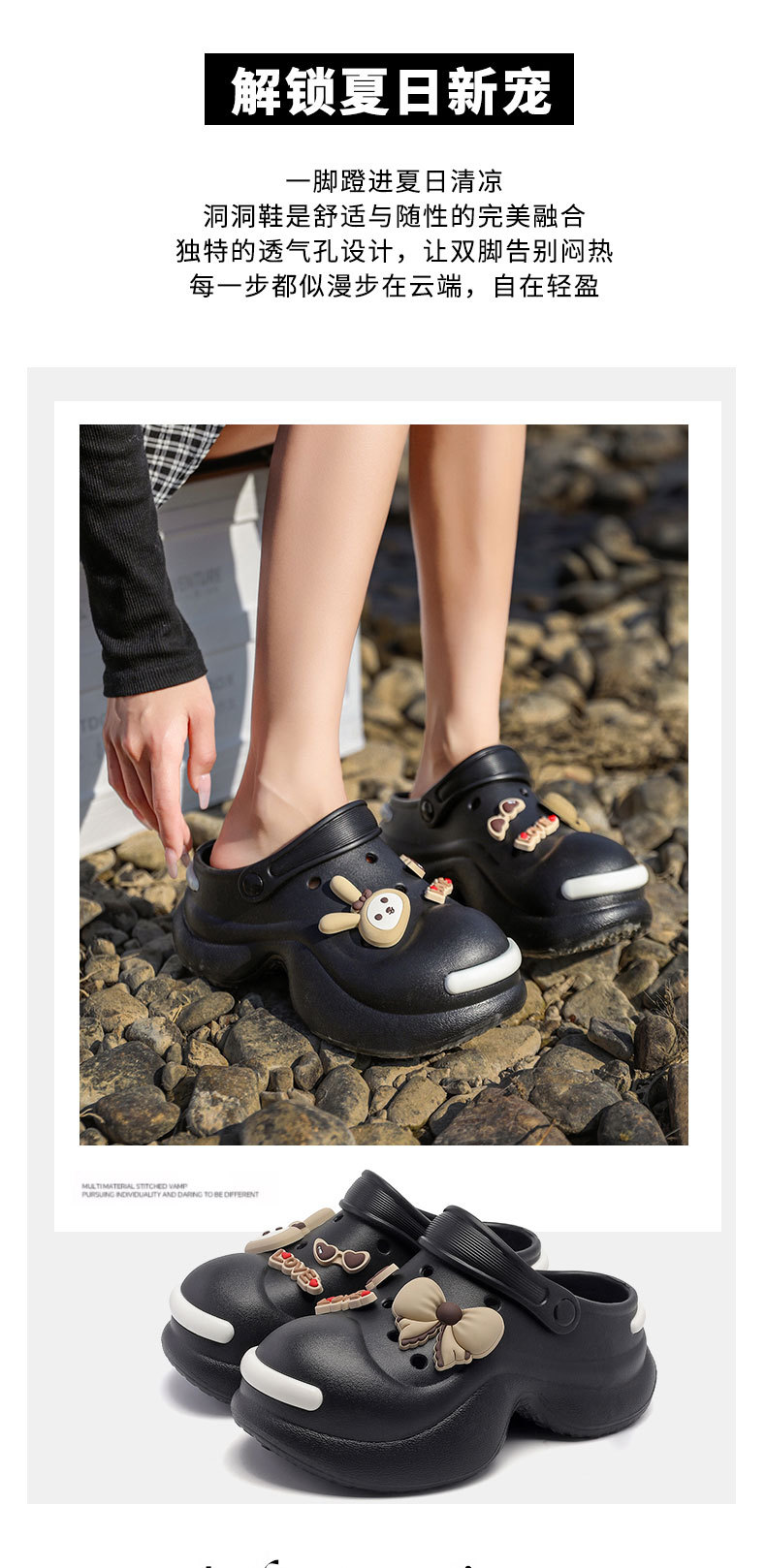 時尚個性厚底洞洞鞋女高顔值外穿花園鞋高跟包頭涼鞋