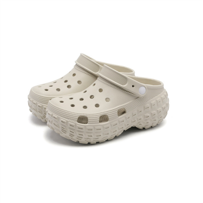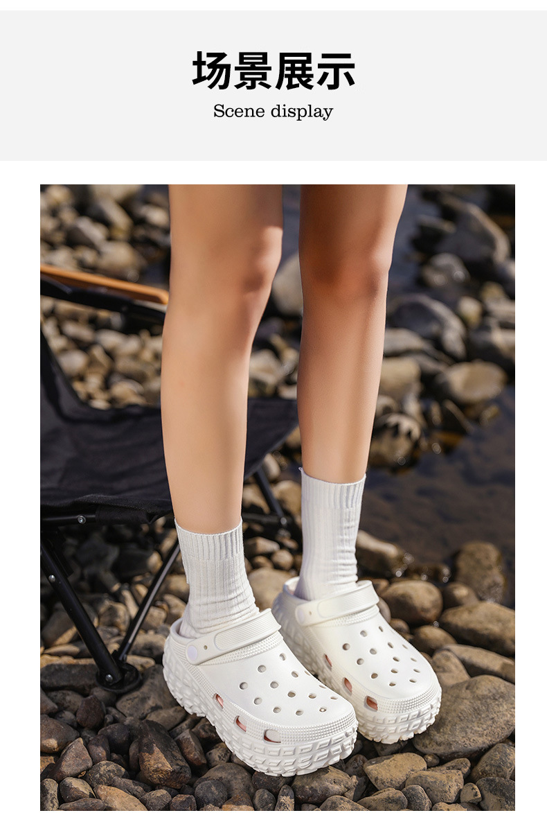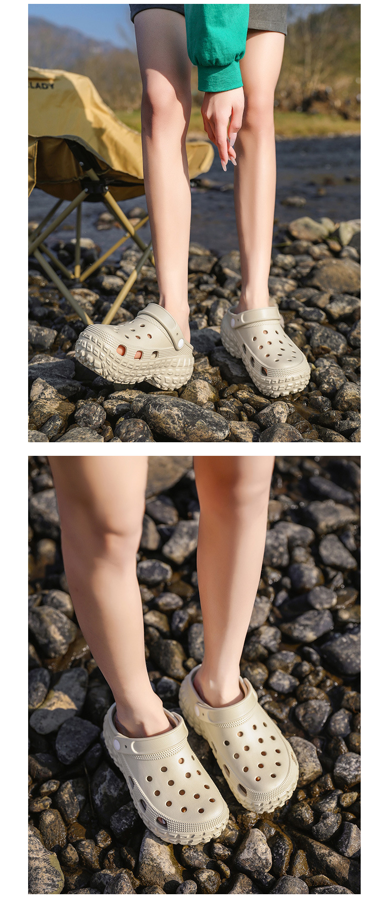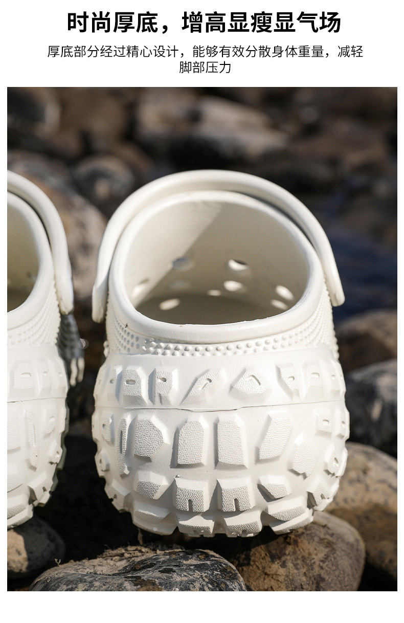 2025新款超厚底輪胎洞洞鞋女增高運動外穿耐磨踩屎感包頭涼鞋戶外