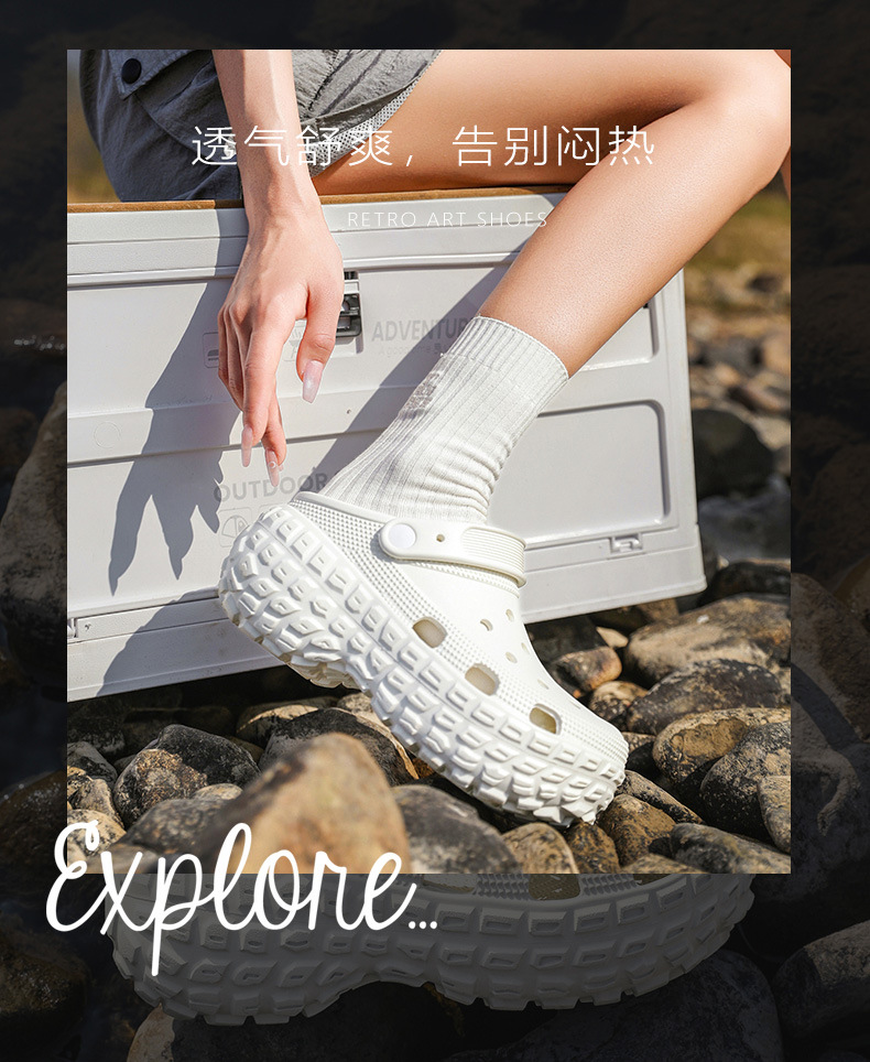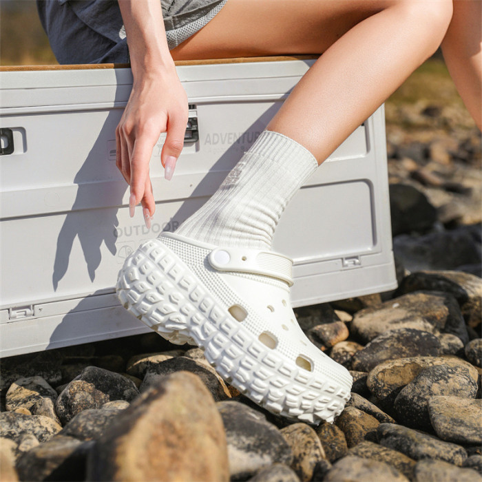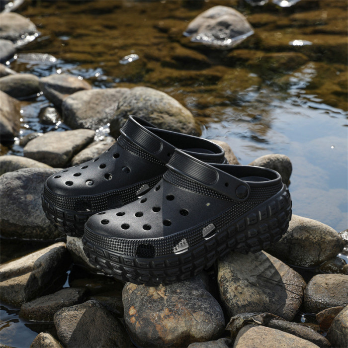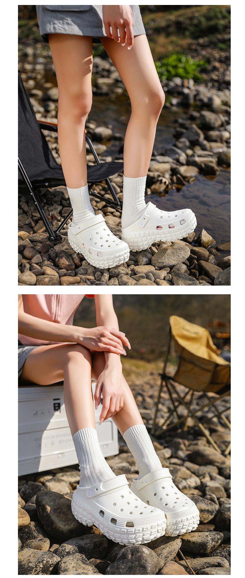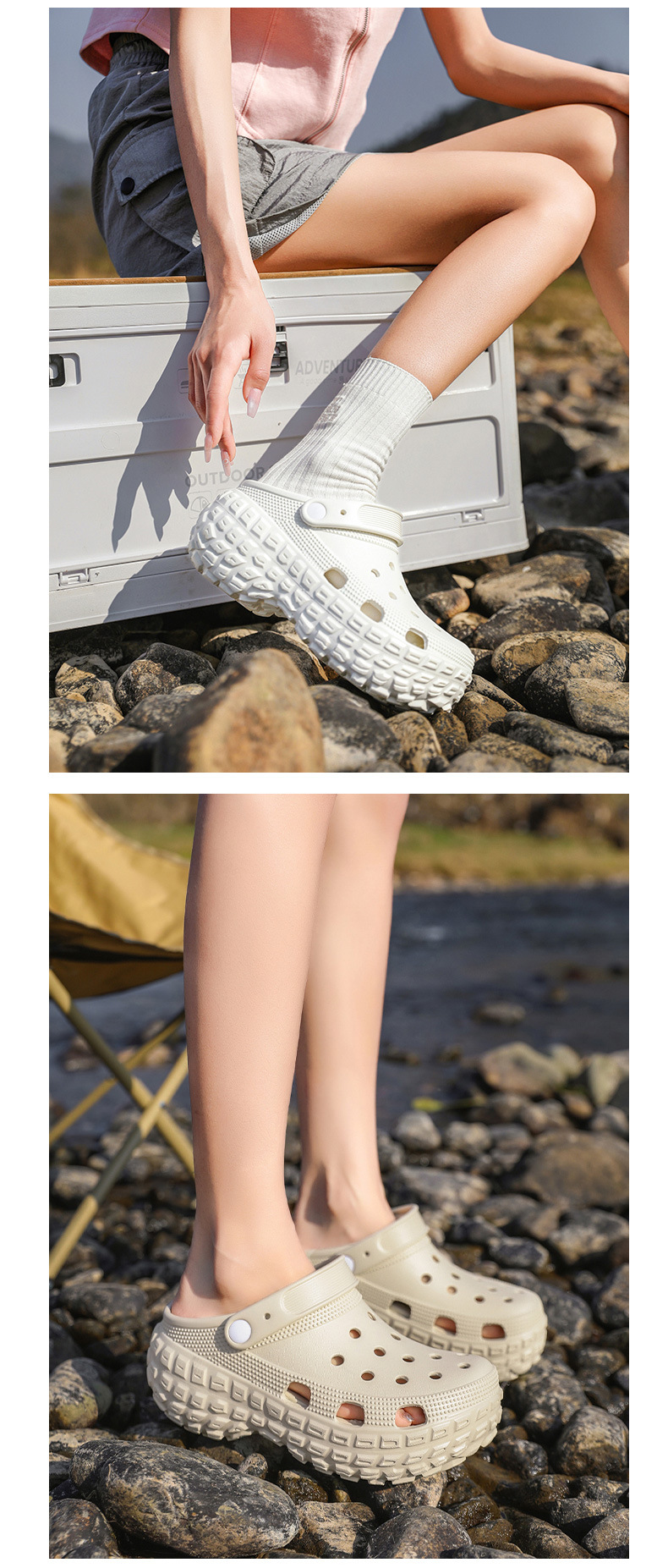 2025新款超厚底輪胎洞洞鞋女增高運動外穿耐磨踩屎感包頭涼鞋戶外