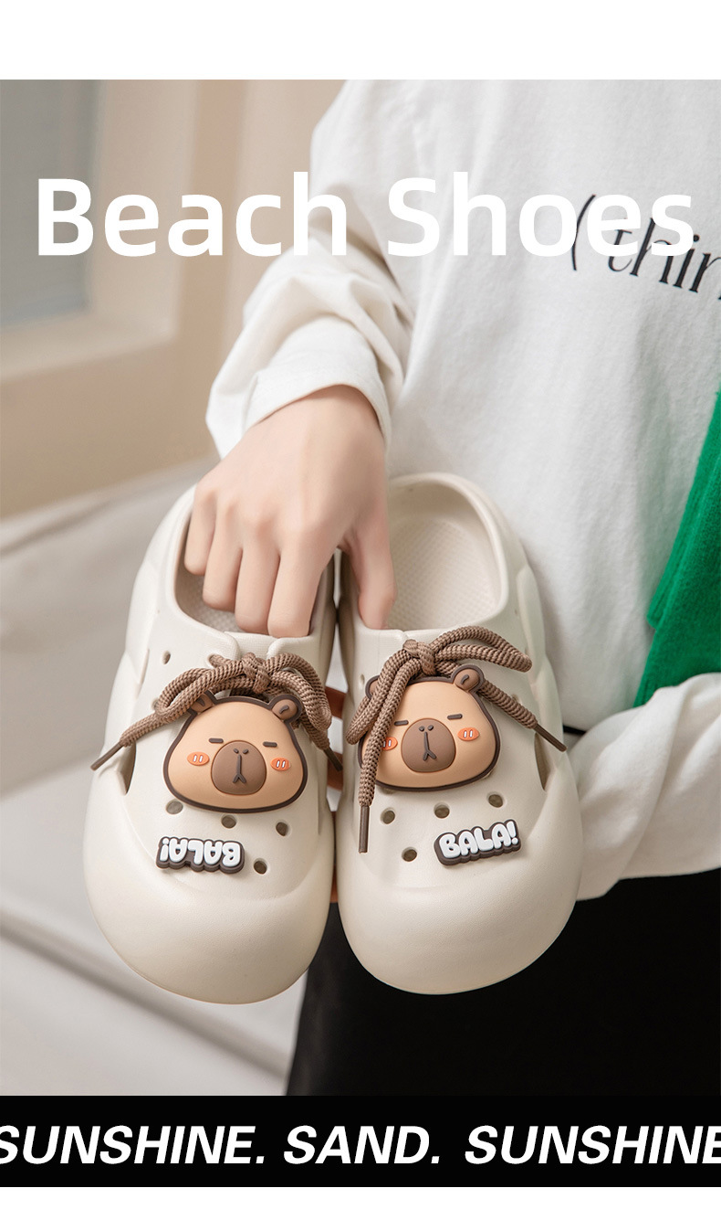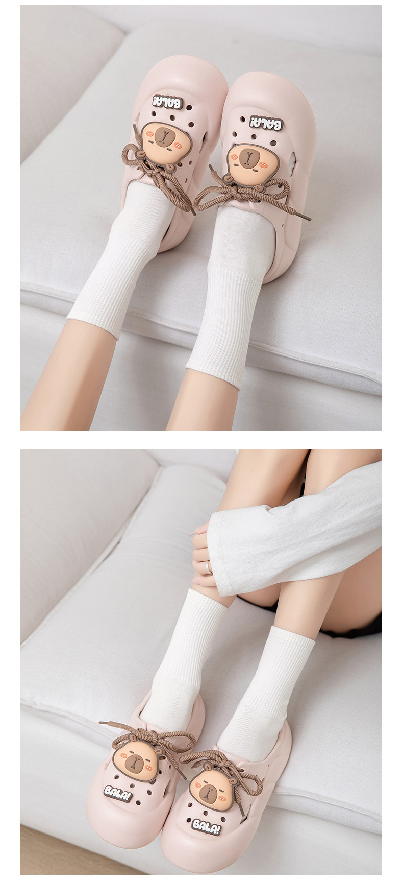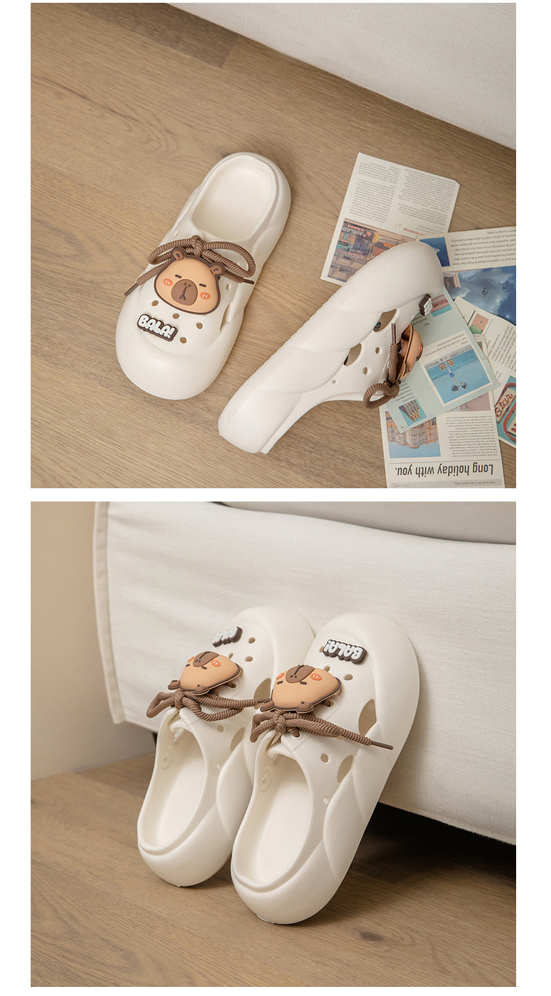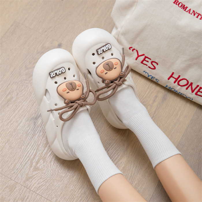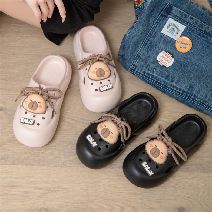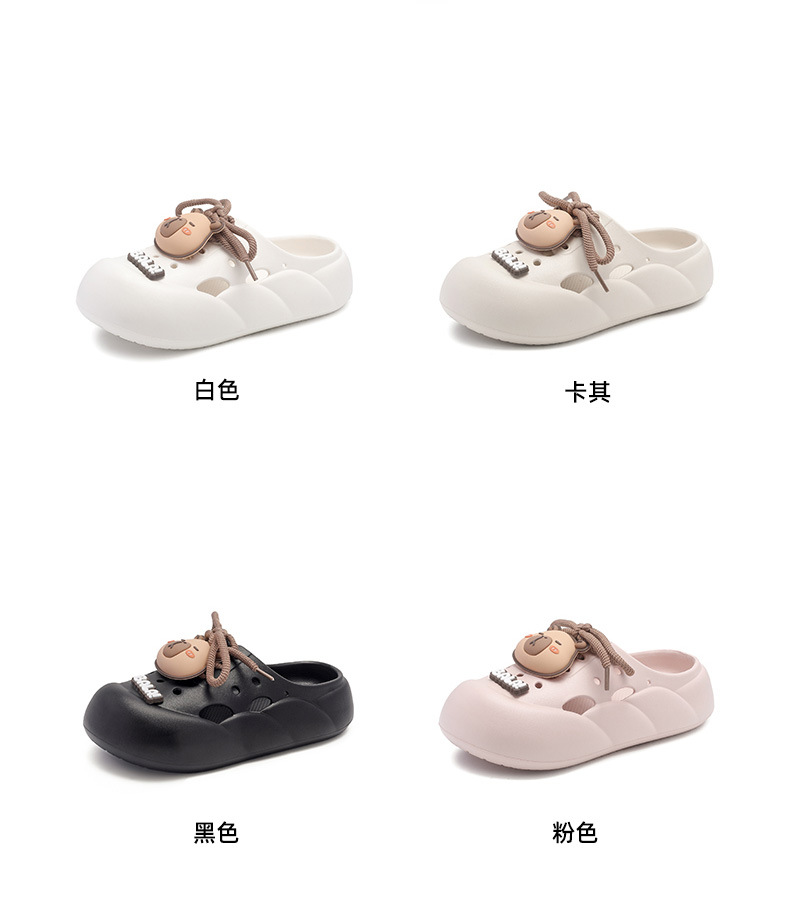 可愛洞洞鞋夏季款戶外 綁帶穿搭EVA涼拖鞋增高包頭拖鞋女厚底拖