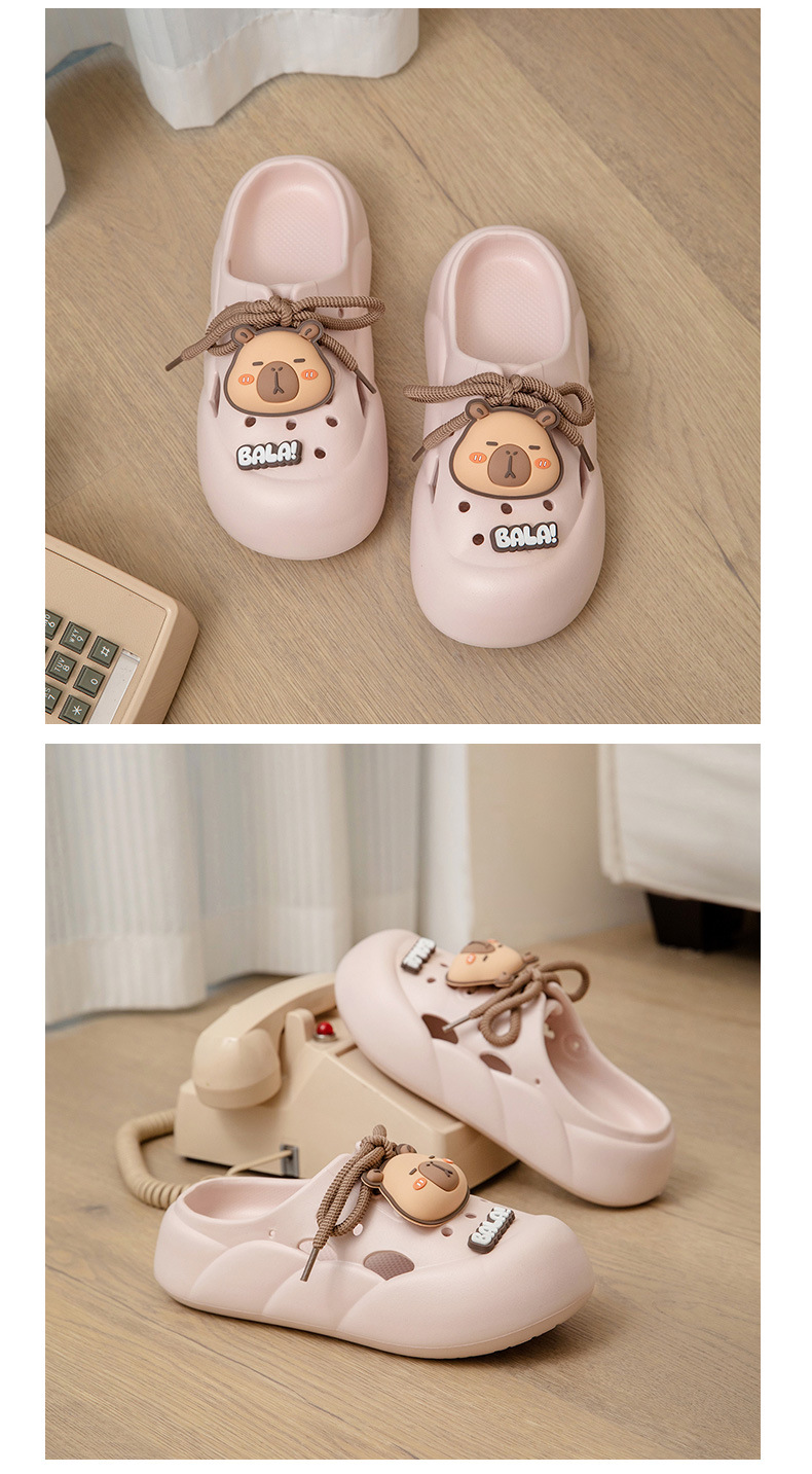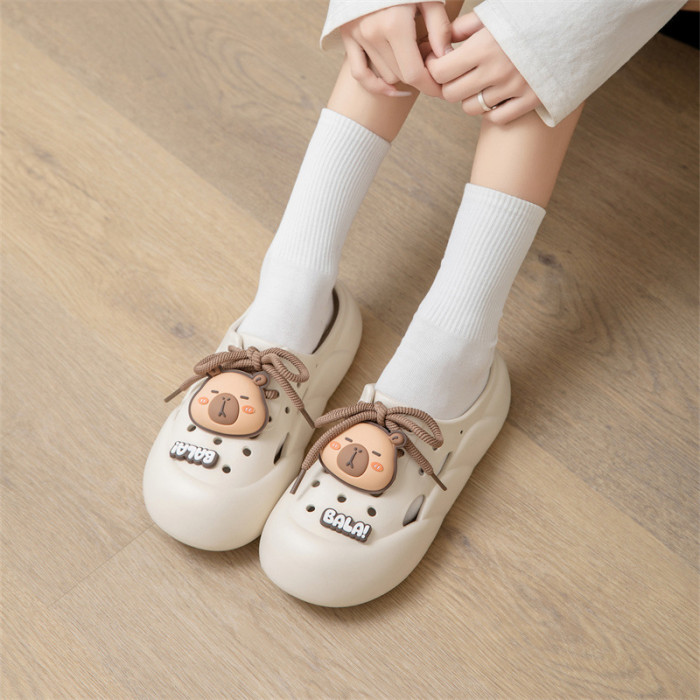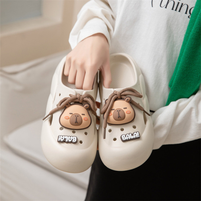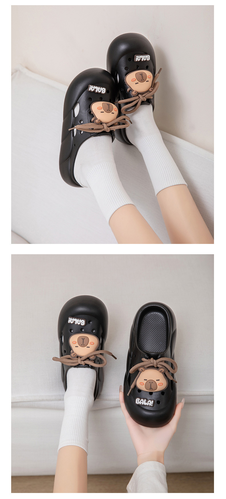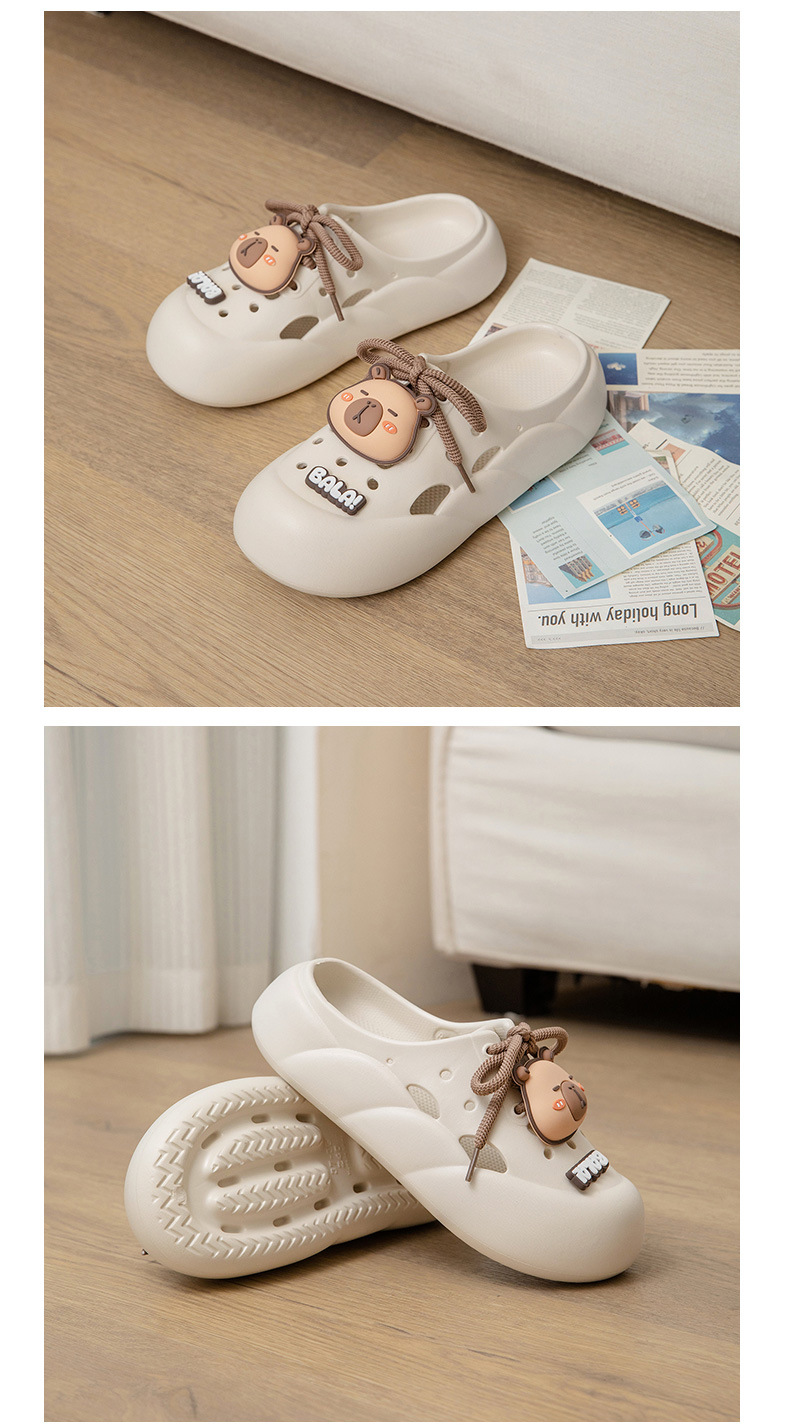 可愛洞洞鞋夏季款戶外 綁帶穿搭EVA涼拖鞋增高包頭拖鞋女厚底拖