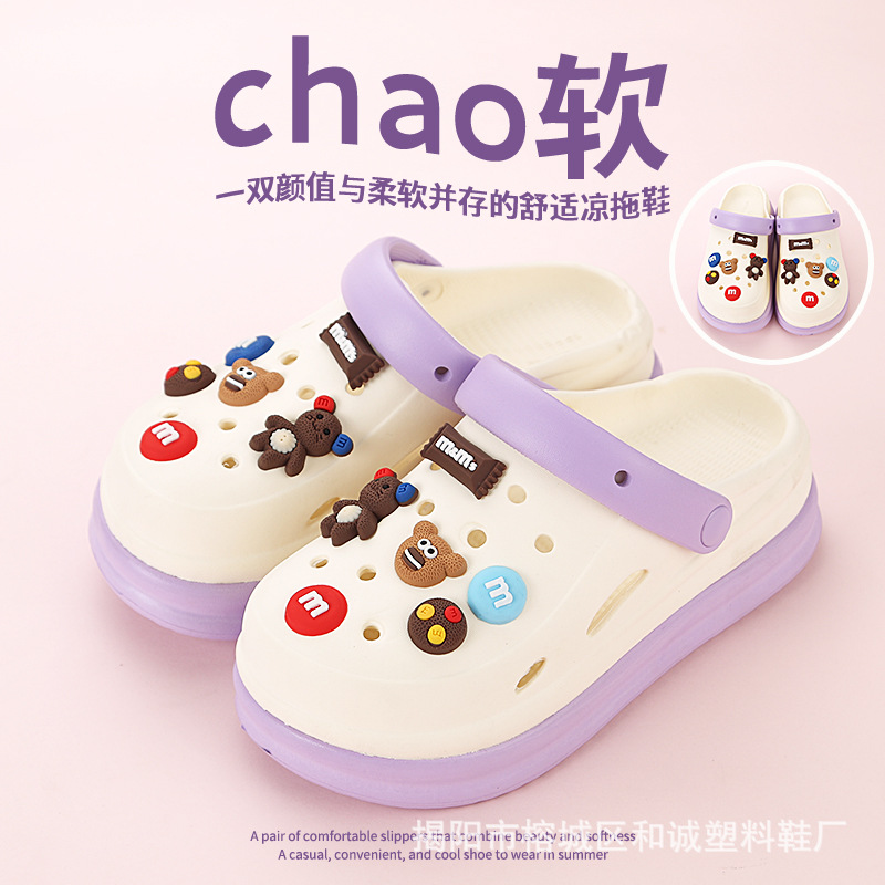 卡通可愛花朵配飾洞洞鞋女夏季外穿2025新款厚底增高包頭涼拖鞋