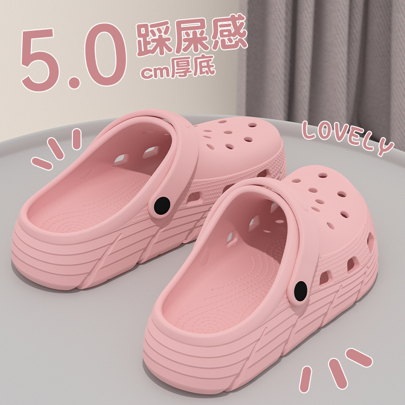 洞洞鞋女2025新款外穿夏季厚底增高海邊網紅沙灘防滑包頭涼拖女士