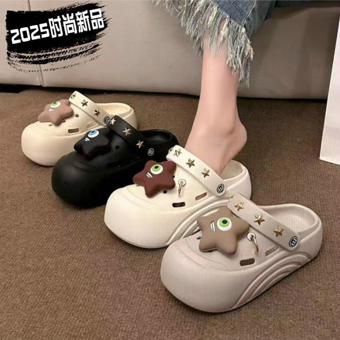 2025新款洞洞鞋女厚底可愛夏季沙灘防滑包頭透氣外穿涼拖