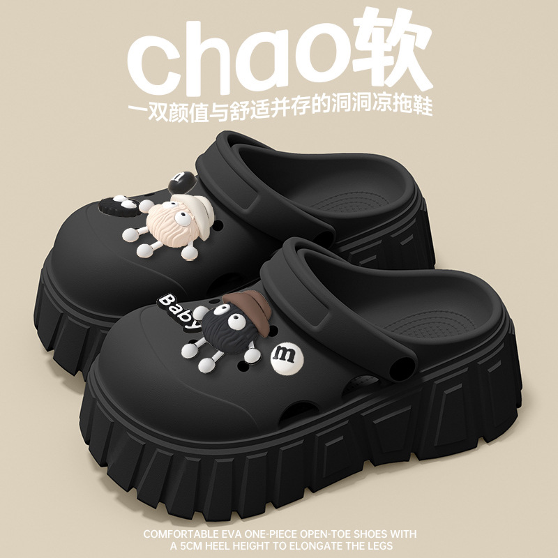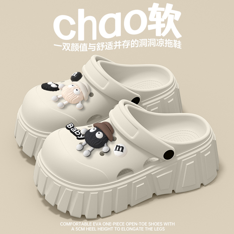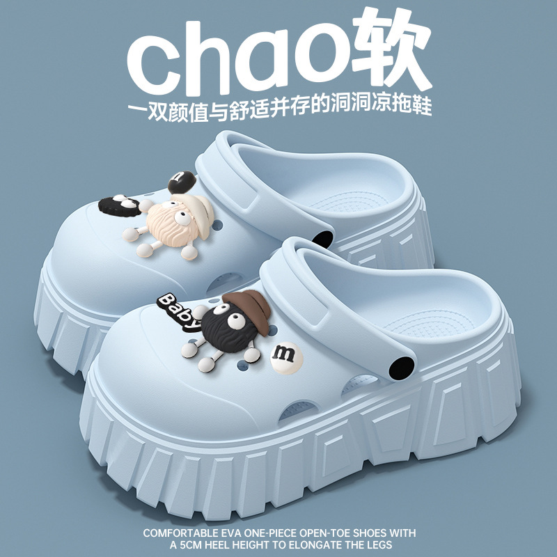 厚底洞洞鞋女款2025新款夏季外穿逛街沙灘防滑超火包頭涼拖鞋女士