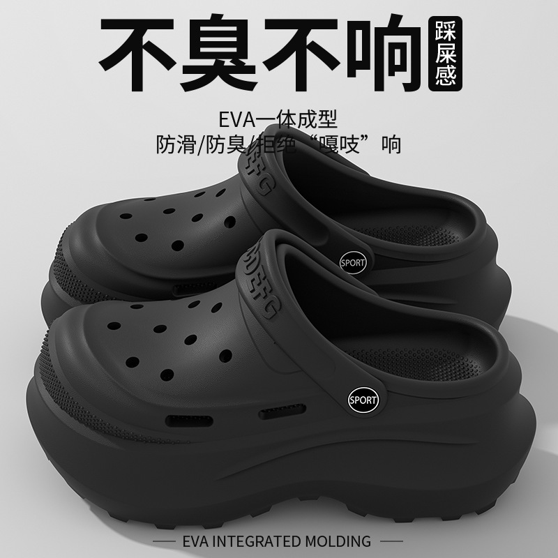 可愛DIY厚底增高洞洞鞋女夏季外穿防滑防臭海邊沙灘包頭半涼拖鞋