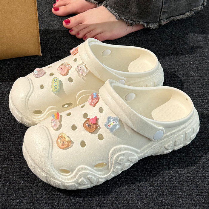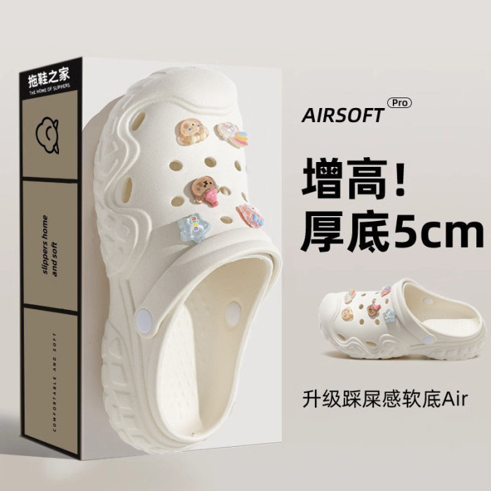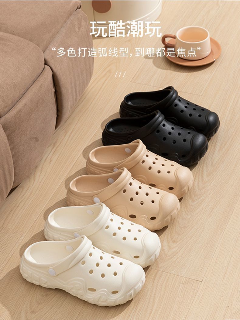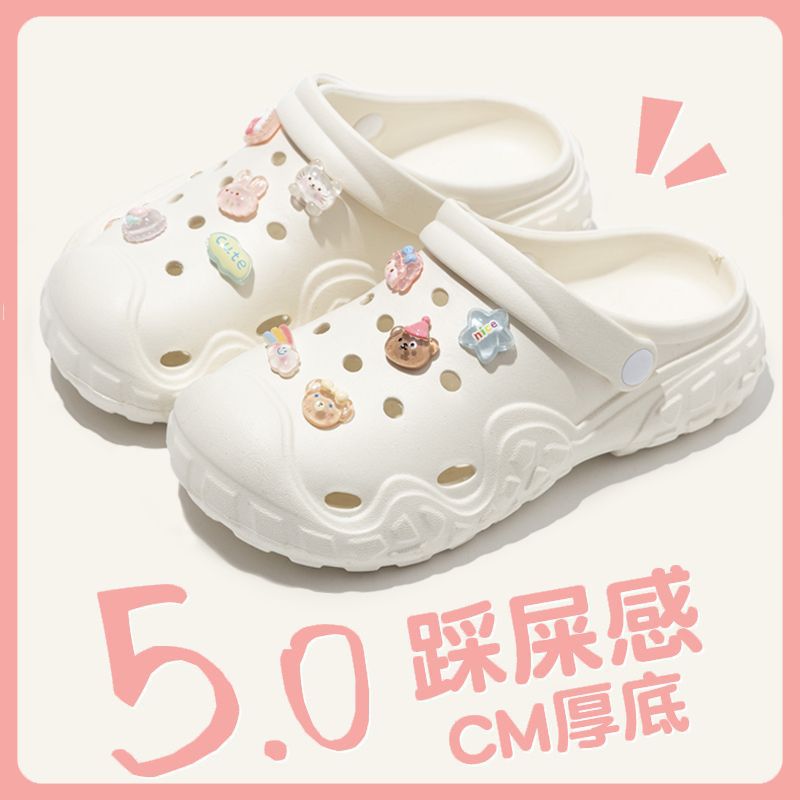 踩屎感洞洞鞋女款夏季2025新款厚底防滑沙灘包頭eva外穿涼拖鞋女