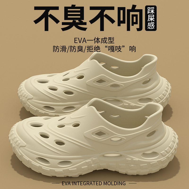 踩屎感洞洞鞋男夏季開車釣魚外穿厚底防滑戶外耐磨沙灘包頭涼鞋男