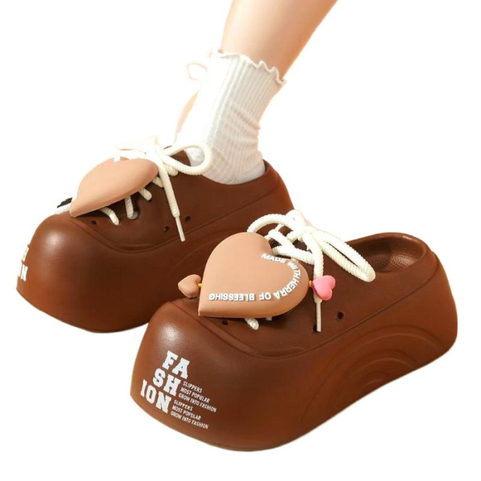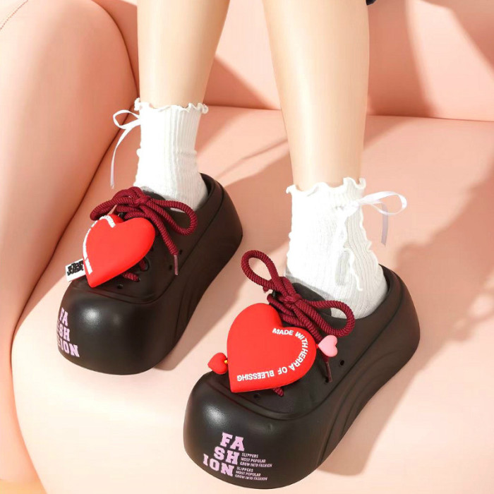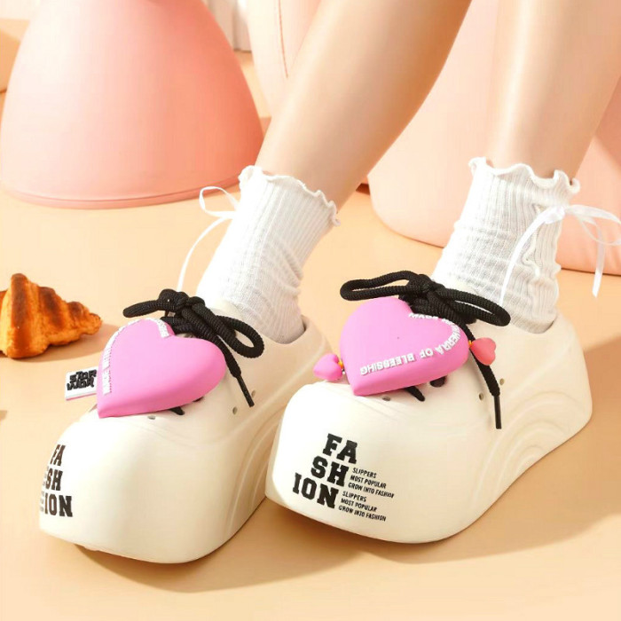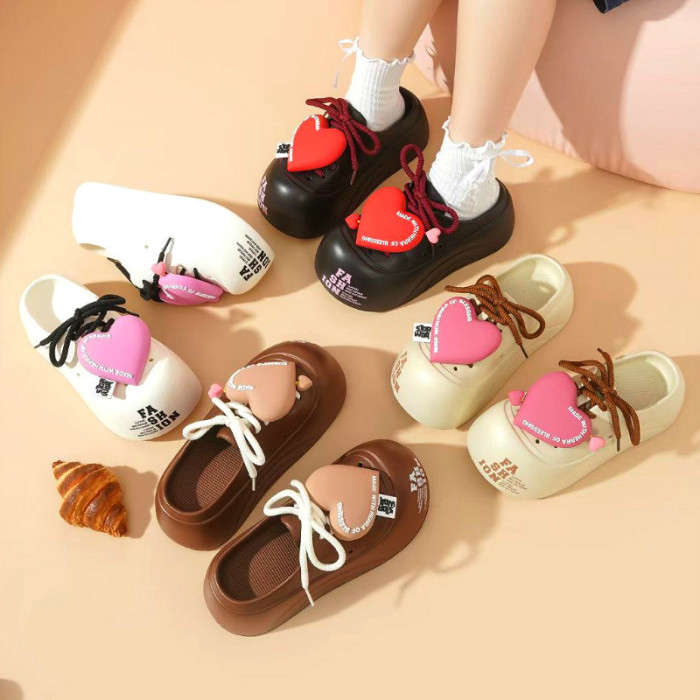 2025新款愛心涼拖鞋女士夏季外穿防滑厚底懶人鞋兩穿沙灘洞洞鞋子