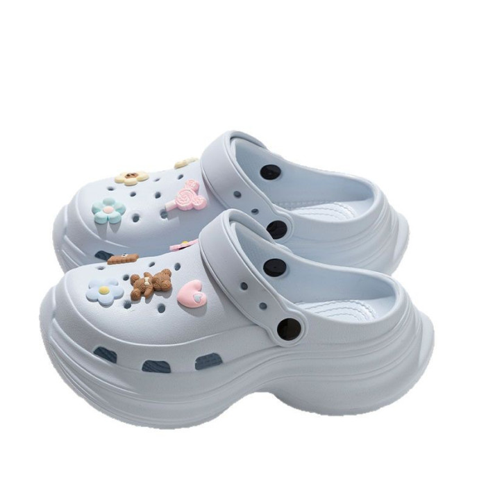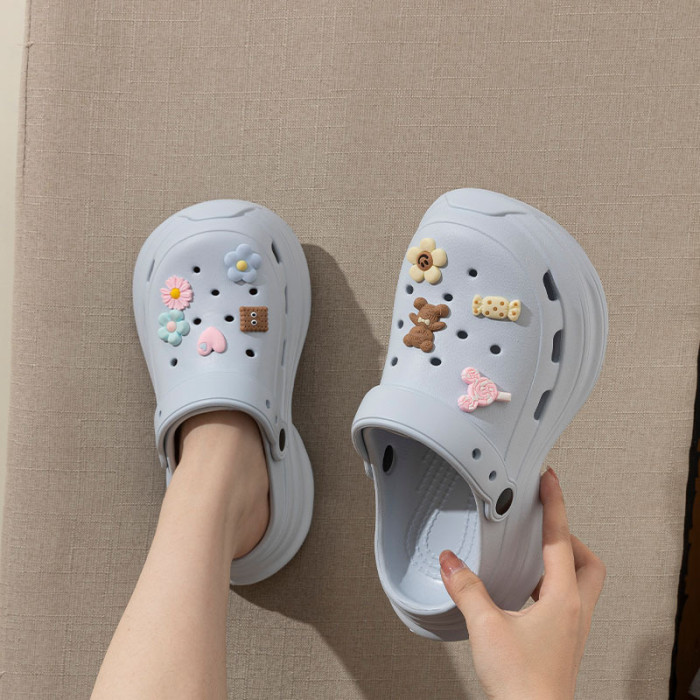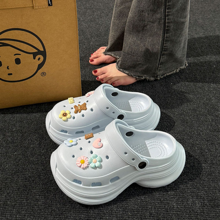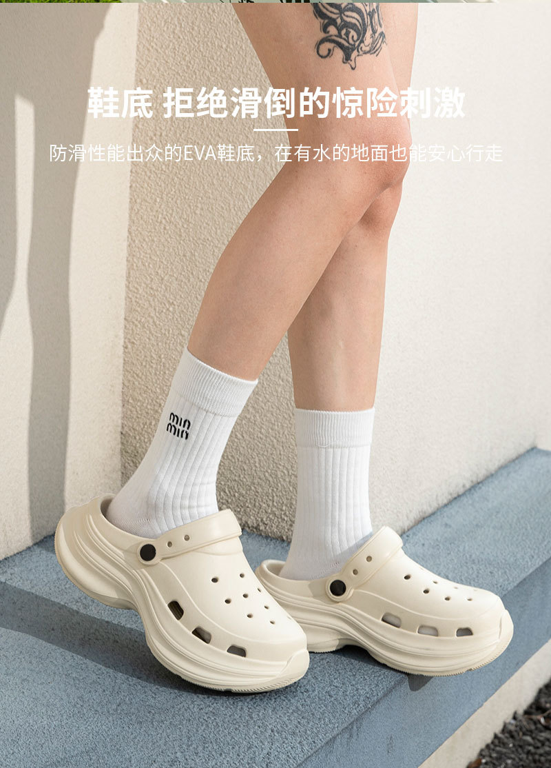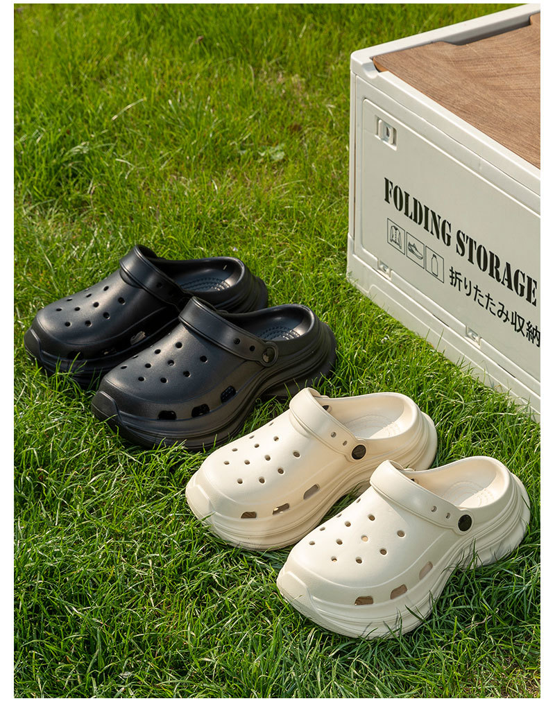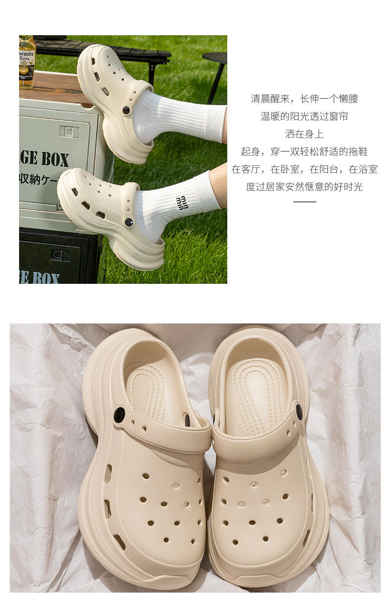 厚底洞洞鞋女夏季外穿2025新款小個子增高搭裙子包頭沙灘涼拖鞋女