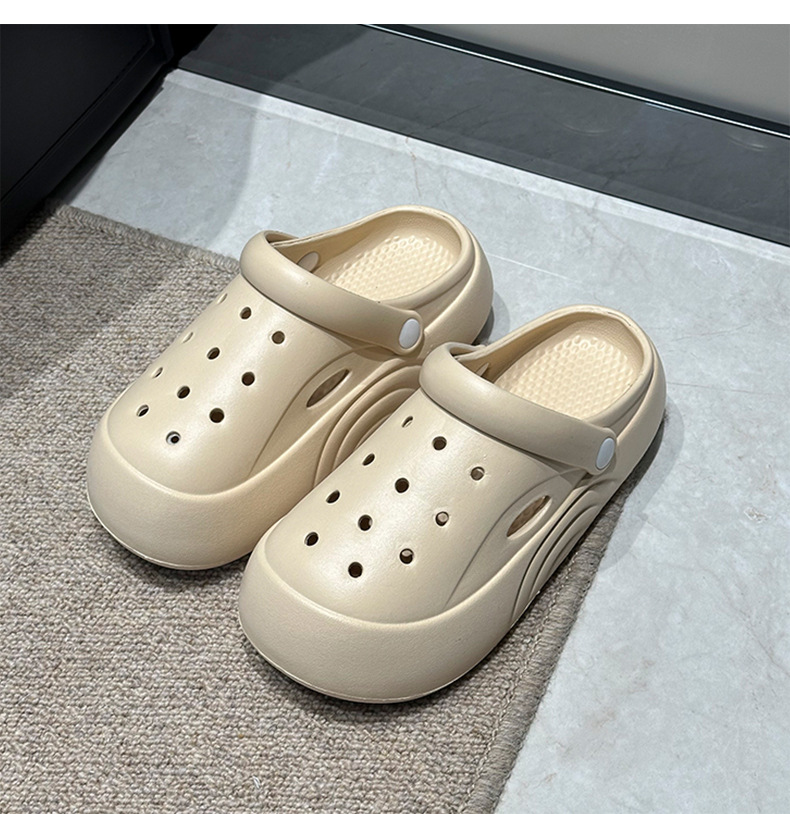 踩屎感洞洞鞋女夏季外穿2025新款超火厚底海邊沙灘防滑包頭半拖鞋