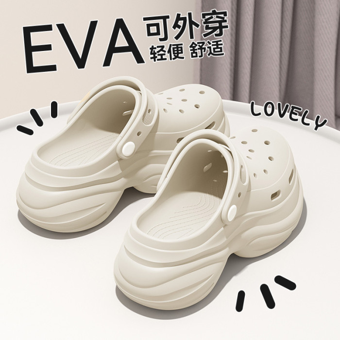 厚底洞洞鞋女士外穿夏季2025新款室內防滑包頭增高涼拖鞋女士夏