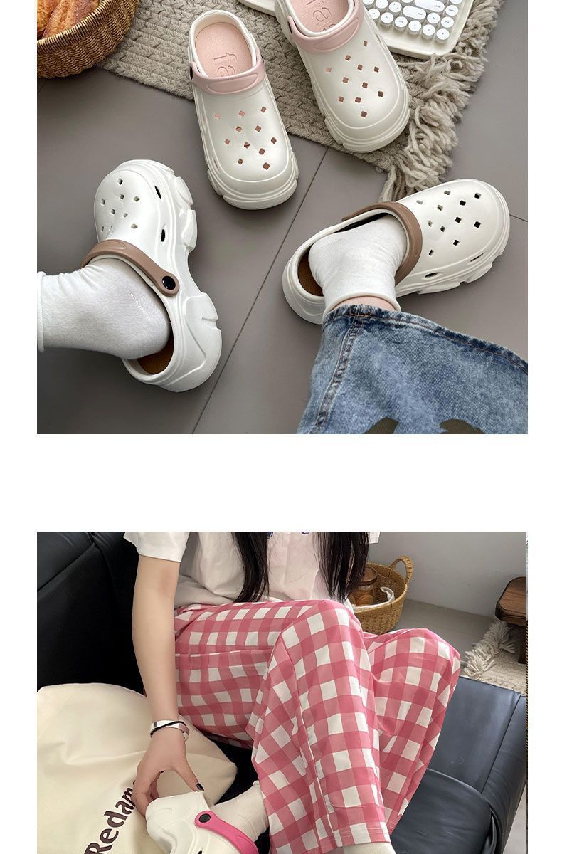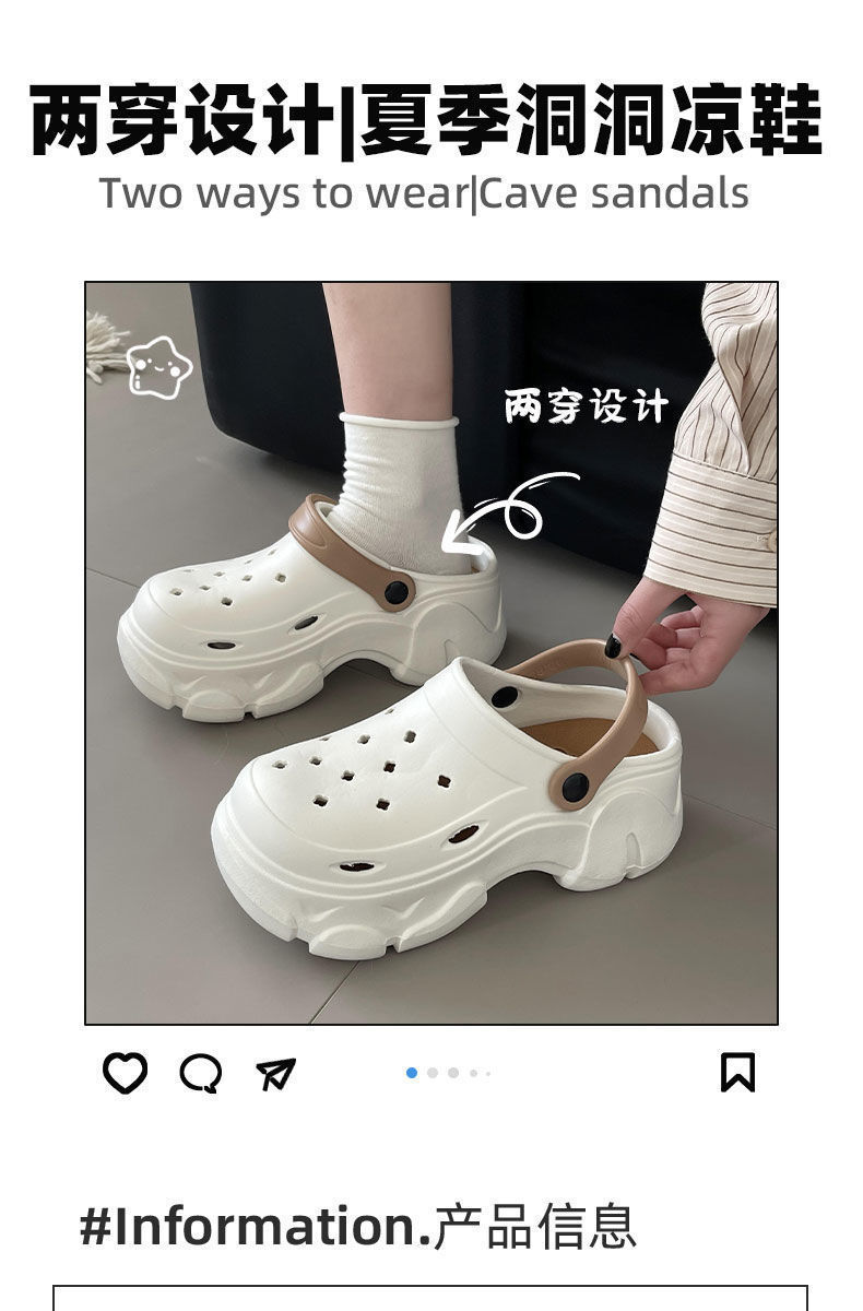 厚底增高洞洞鞋女款夏季外穿防臭網紅超火海邊沙灘絕美包頭涼鞋女