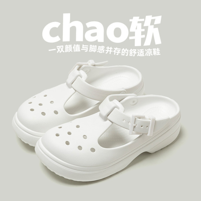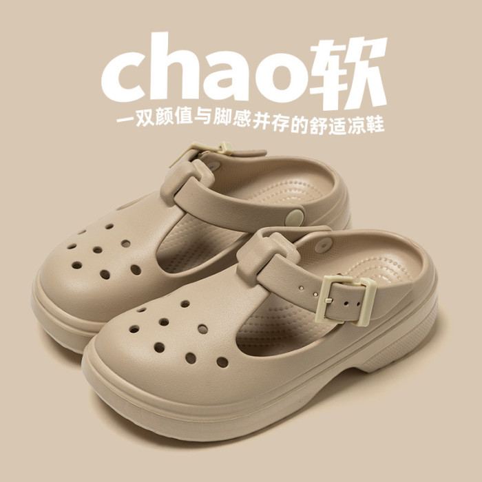 2025新款瑪麗珍洞洞鞋居家戶外休閒沙灘鞋女士包頭涼拖鞋爆款