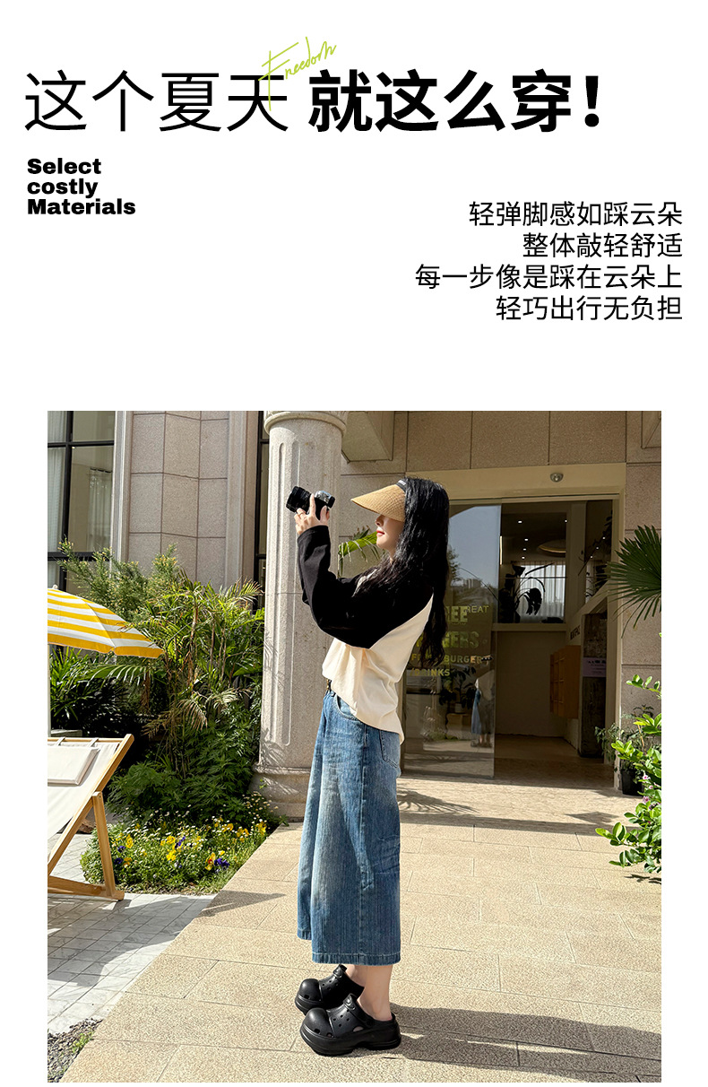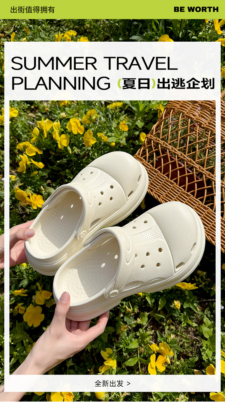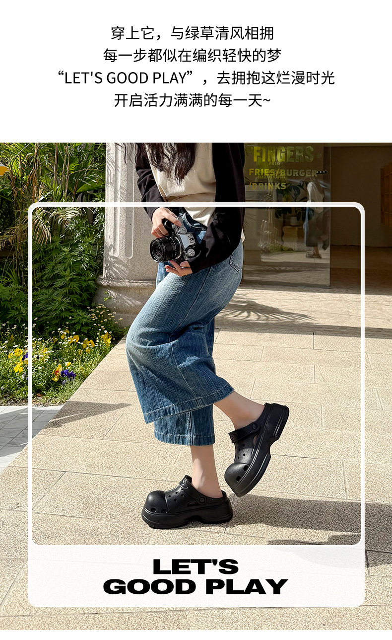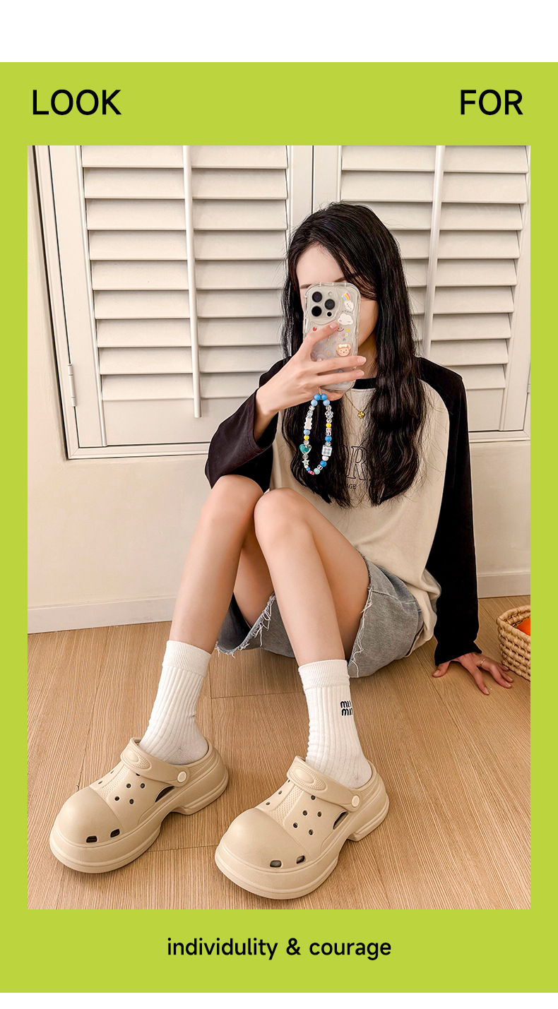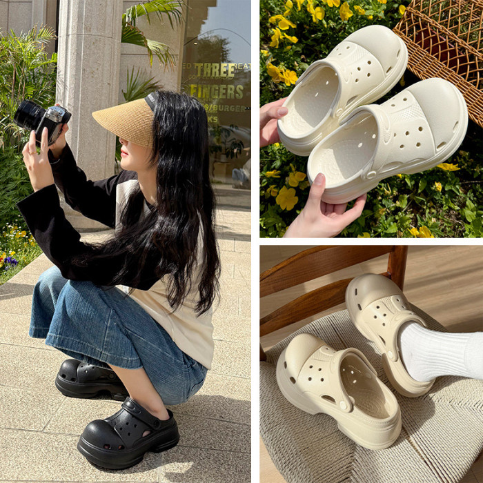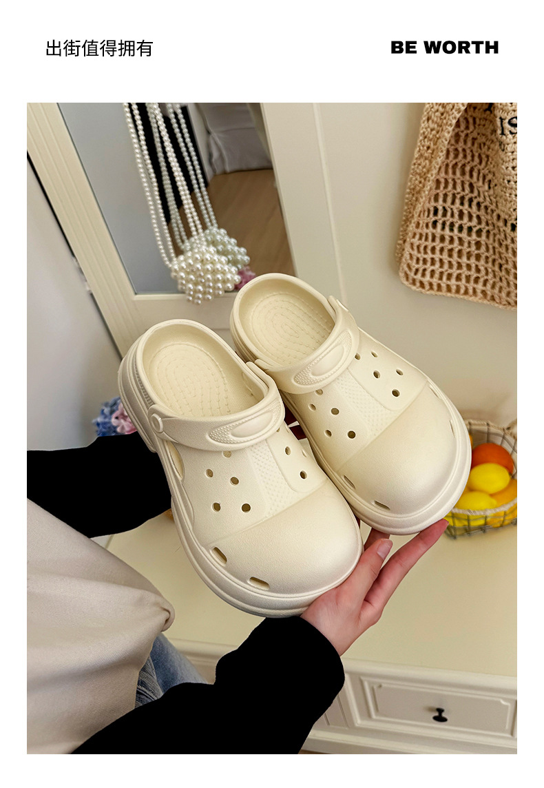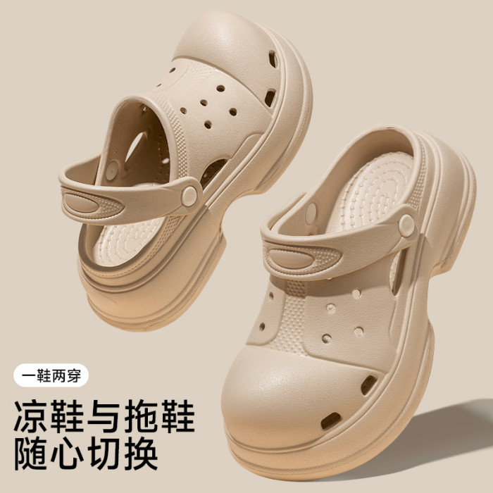馬蹄洞洞鞋女生個性夏季沙灘可愛包頭戶外穿防滑高跟涼拖鞋女士
