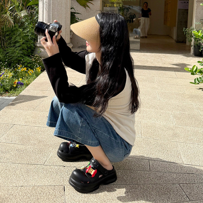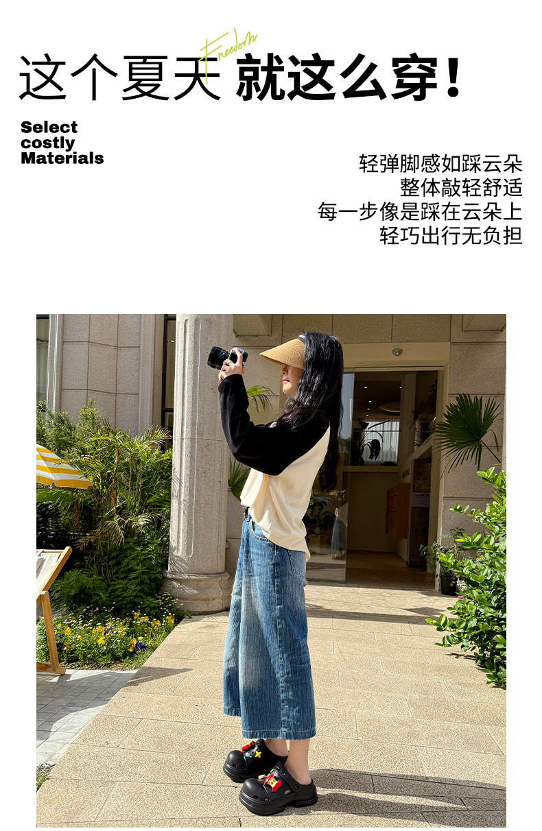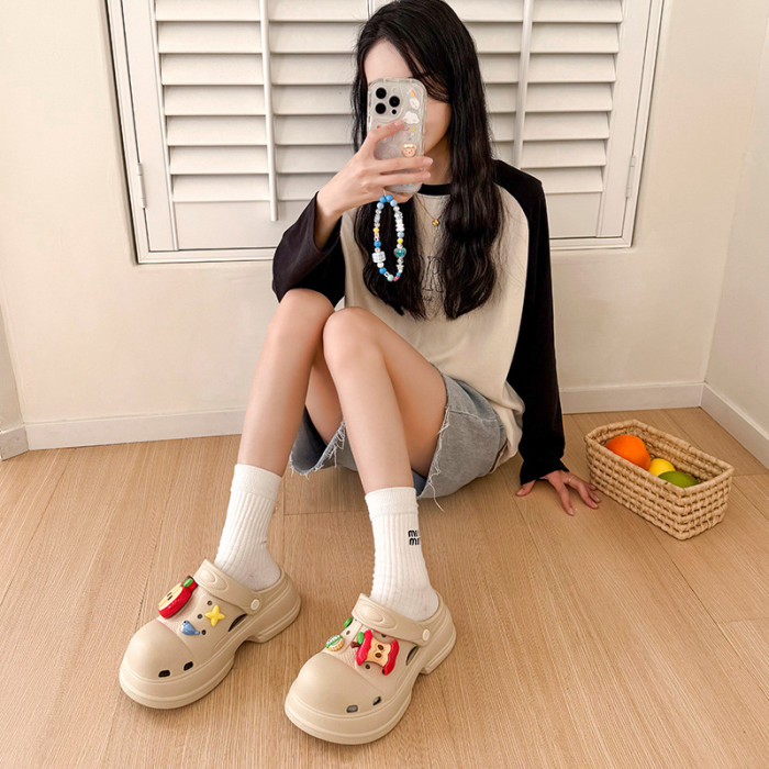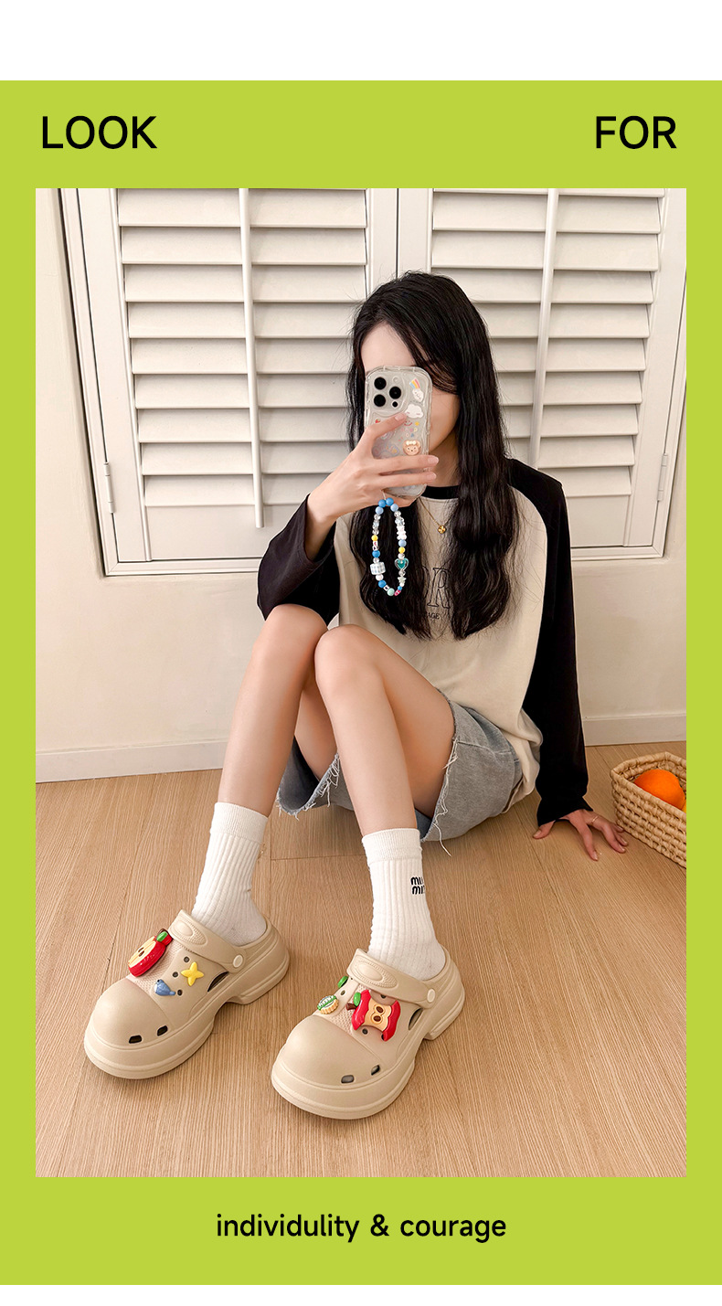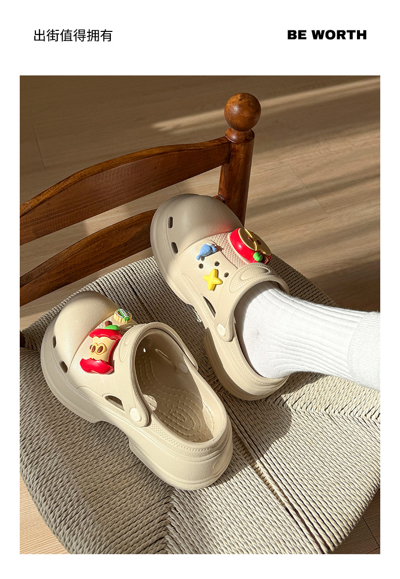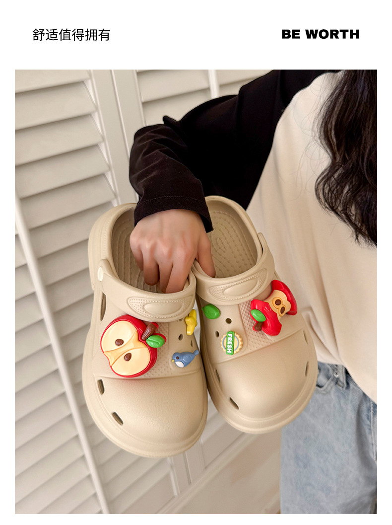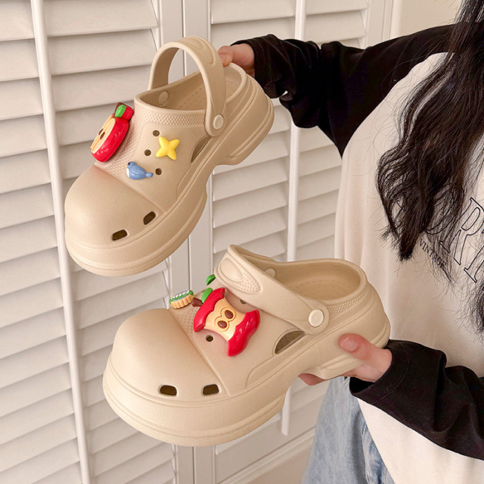 馬蹄厚底洞洞鞋女款夏季新款外穿防滑防臭增高踩屎感eva涼拖鞋女