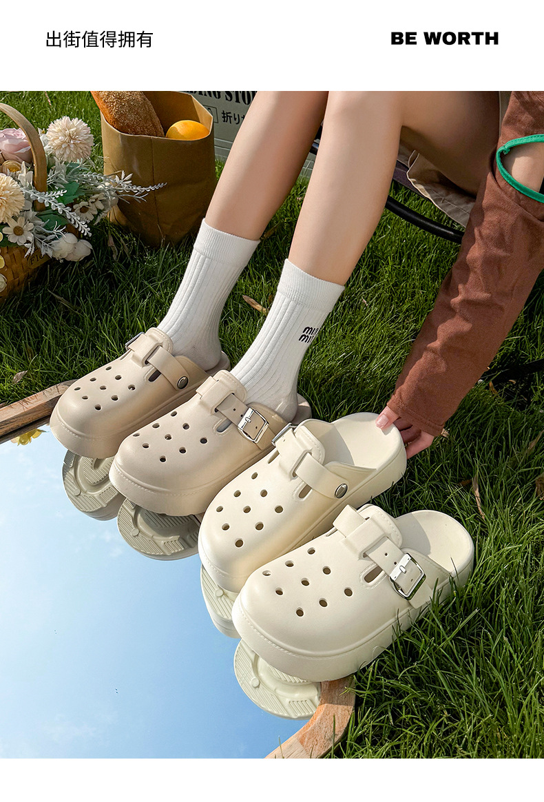勃肯洞洞鞋2025新款沙灘防滑防臭EVA踩屎感包頭拖鞋女款夏季外穿