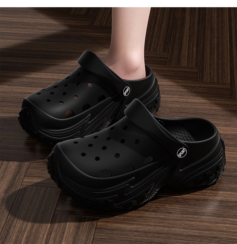 增高厚底洞洞鞋女款2025新款夏季外穿包頭防臭防滑海邊沙灘涼拖鞋