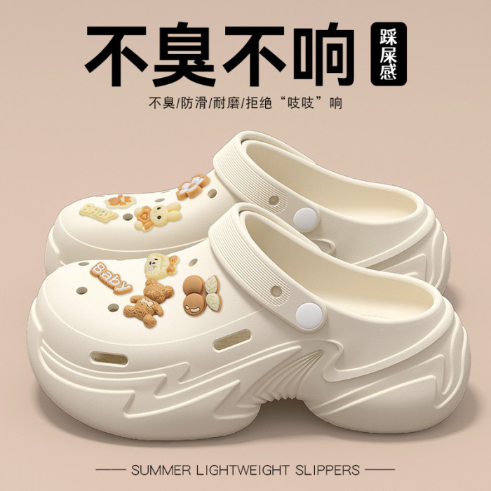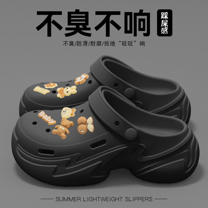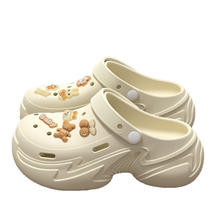 焦糖小熊厚底洞洞鞋女款夏季新款外穿沙灘防滑防臭包頭涼拖鞋女士