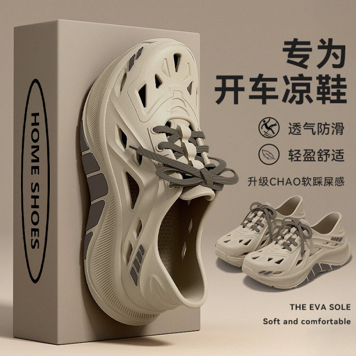 厚底洞洞鞋男款2025夏季新款外穿司機開車防滑防臭軟底eva涼鞋男