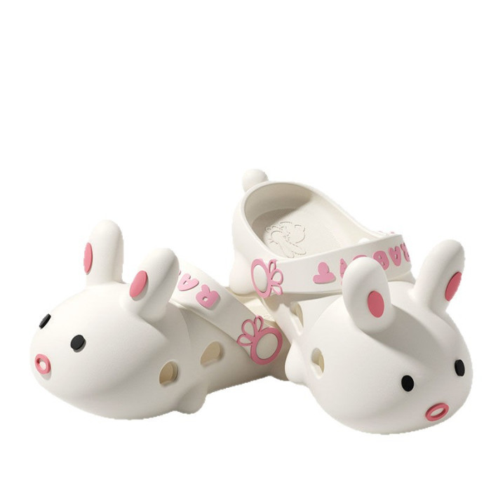 超火可愛卡通兔子洞洞鞋女夏學生外穿防滑ins少女心包頭涼拖鞋女