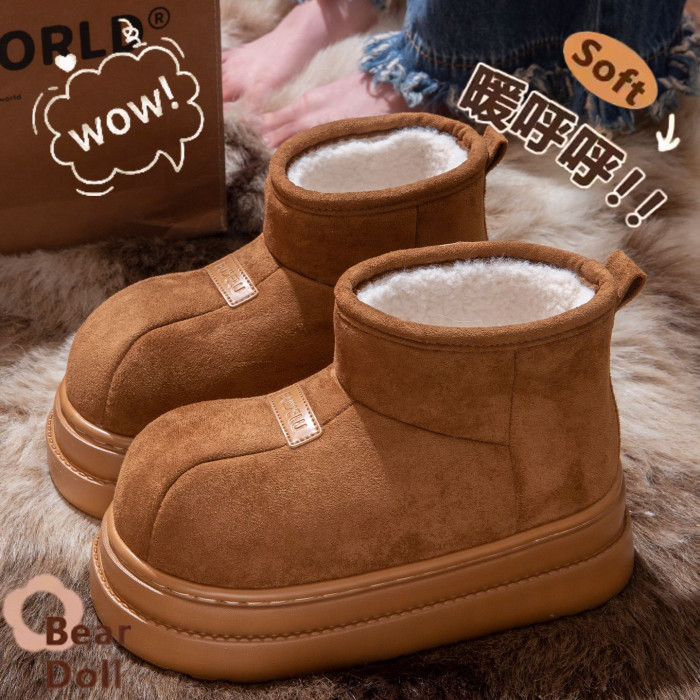 高包跟棉拖鞋女款秋冬季加絨加厚雪地靴時尚外穿厚底增高保暖棉鞋