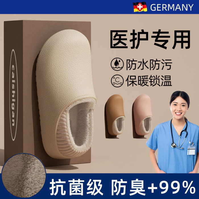 手術室防水棉拖鞋女冬季外穿加絨保暖厚底家居防滑防臭醫用護士鞋