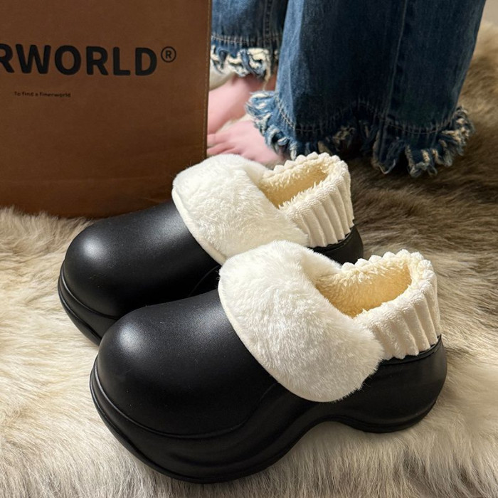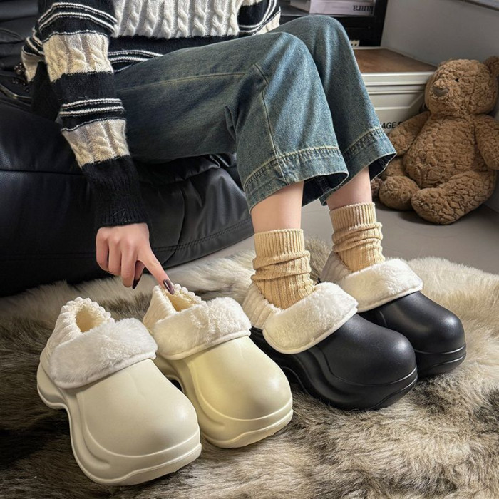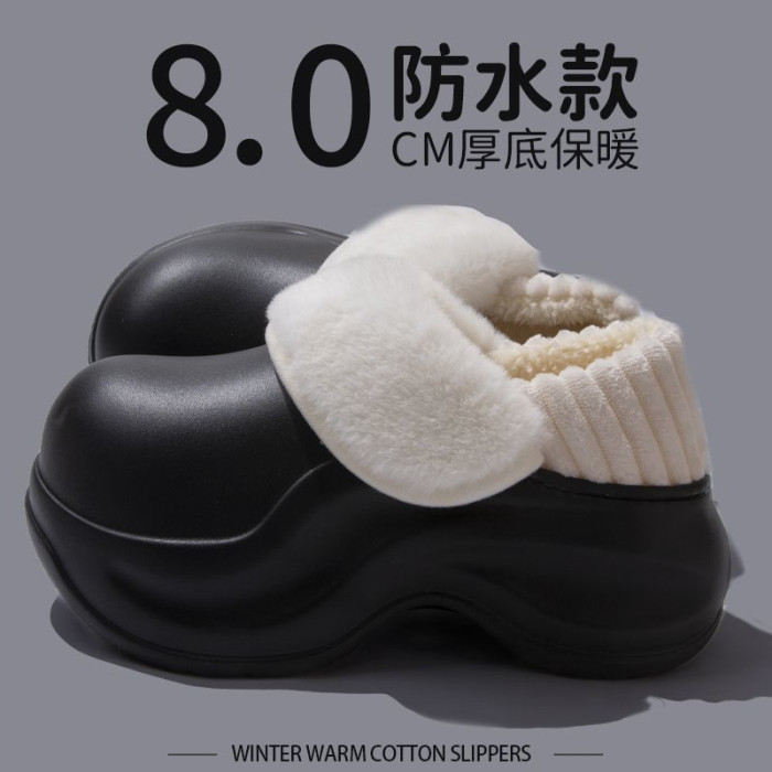 8.0cm厚底增高棉拖鞋女款冬季外穿家居保暖防水毛絨保暖包跟棉鞋