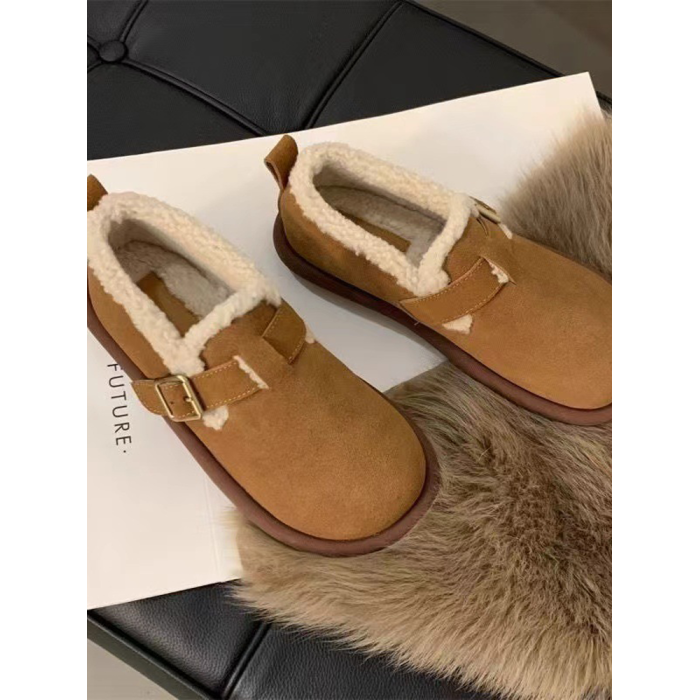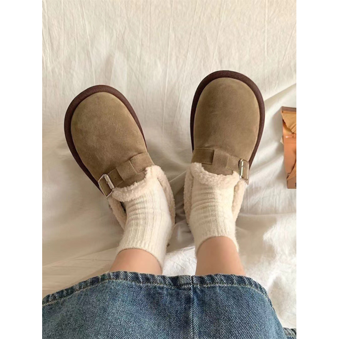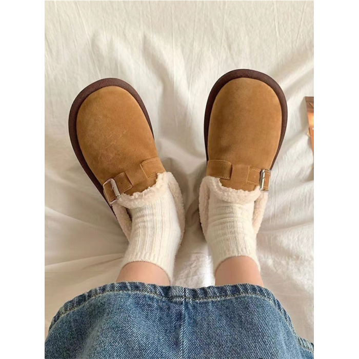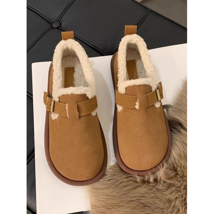勃肯鞋女秋冬復古文藝休閒鞋子一腳蹬防滑加絨2025新款保暖豆豆鞋